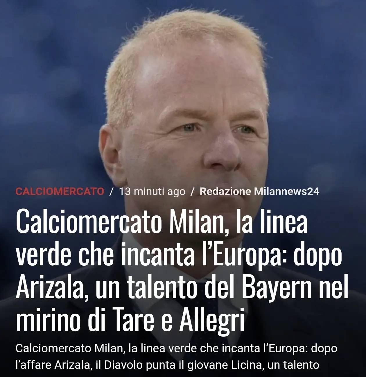 มิลานยังคงเดินหน้าเสี่ยงโชคอย่างต่อเนื่อง ด้วยการจับฉลากมาพบกับบาเยิร์น มิวนิค พร้อมตั้งเป้าหมายไปที่ดาวรุ่งผู้เปี่ยมไปด้วยพรสวรรค์ในเกมรุกอย่างลิชินา