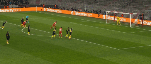 ในนาทีที่ 44 เลวานดอฟสกี้โหม่งบอลเข้าประตูตัวเองโดยไม่ตั้งใจขณะพยายามสกัดบอล ทำให้สกอร์เสมอกันที่ 2-2