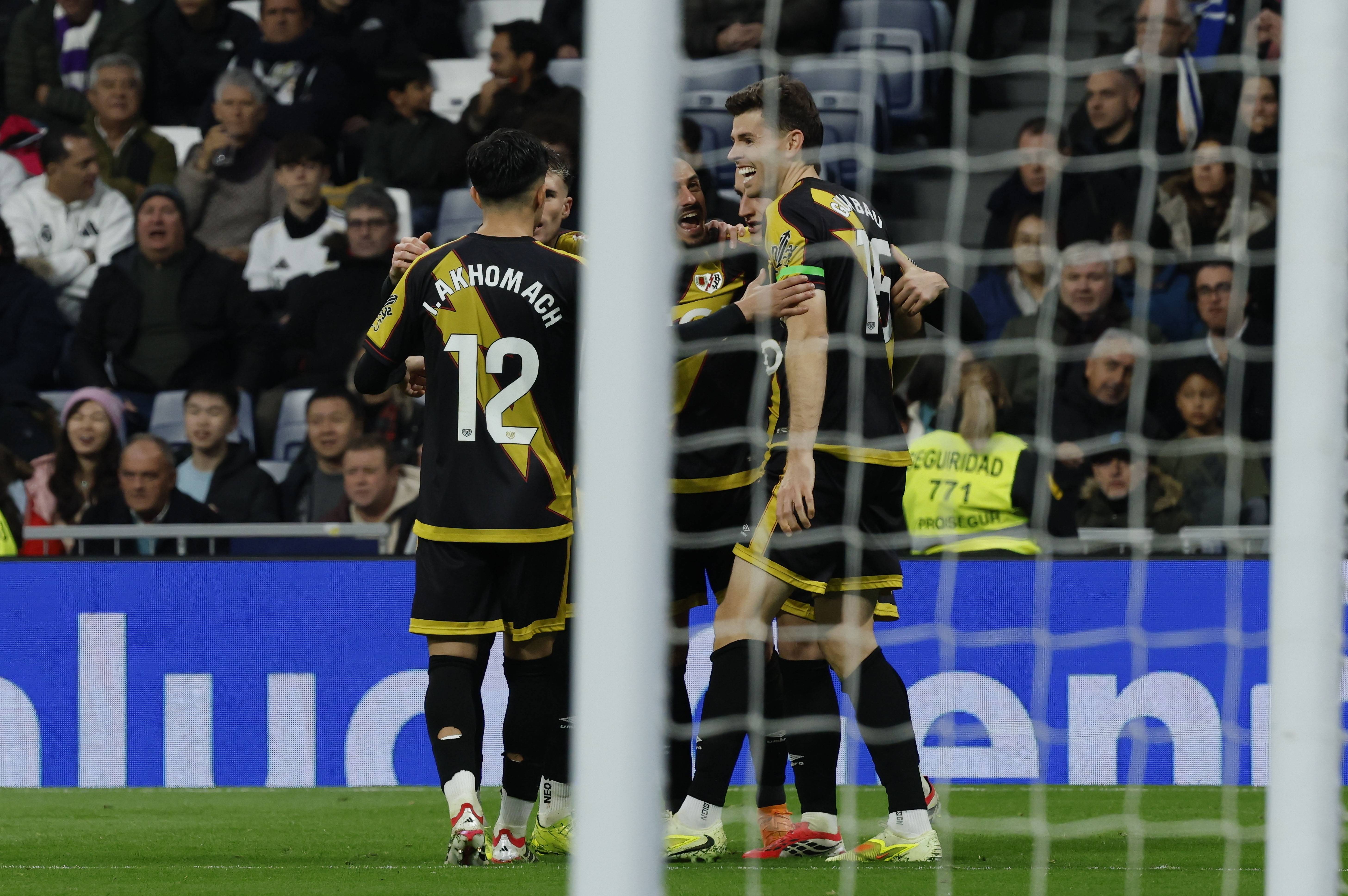เมื่อวันที่ 1 กุมภาพันธ์ ฮุยเซนของเรอัล มาดริด (ด้านหลัง) เข้าปะทะกับปาร์ราโซของราโย บาเยกาโน่เพื่อแย่งบอล ซีเอ็นเอ/อีพีเอ