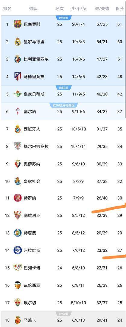 ในโซนกลางตาราง การเสมอระหว่างเกโรน่าและอลาเบสทำให้ทั้งสองทีมยังคงอยู่ในอันดับที่ 11 และ 14 ตามลำดับ ขณะเดียวกัน กลุ่มทีมกลางตารางขนาดใหญ่ซึ่งประกอบด้วยทีมอย่างเรอัล เบติส, เรอัล โซเซียดาด และโอซาซูนา ต่างก็อยู่ใกล้โซนโควตายุโรป โดยหากทีมใดสามารถคว้าชัยชนะติดต่อกันได้ ก็อาจพลิกสถานการณ์ได้ทันที ความแข็งแกร่งที่สูสีกันของทีมกลางตารางในลาลีกา ทำให้ทุกนัดแข่งขันยังคงคาดเดาได้ยาก