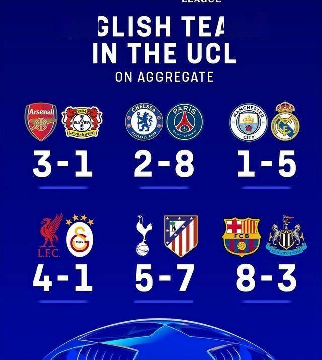 เมื่อเสียงนกหวีดรอบที่สองของรอบที่สองของรอบชิงชนะเลิศแชมเปี้ยนส์ลีก 1/8 หมดไป คำตอบที่มอบให้โดยพรีเมียร์ลีกหกอันดับแรกนั้นแย่มาก มีเพียงอาร์เซนอลและลิเวอร์พูลเท่านั้นที่พยายามดิ้นรนเพื่อผ่านเข้าสู่รอบก่อนรองชนะเลิศ และอีกสี่ทีมก็พังทลาย ขณะนี้จำนวน 30 ประตูใน 12 เกมถูกทำลายอย่างสมบูรณ์ในขณะนี้ ท็อตแนมชนะ สถิติที่แย่ที่สุดของเชลซีในประวัติศาสตร์ของทีม เรอัล มาดริด ฆ่าสองครั้งโดยเรอัล มาดริด และนิวคาสเซิลถูกบาร์เซโลนาบุกเลือด ซึ่งเป็นความพ่ายแพ้ร่วมกันของทีมพรีเมียร์ลีกในเวทียุโรปนั้นน่าตะลึงยิ่งกว่าการตกต่ำในรอบแรก