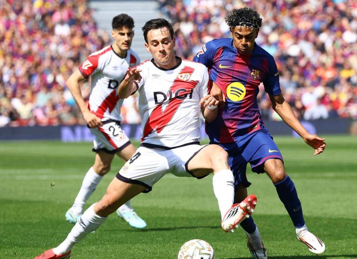 หลังจากทำประตูได้ บาร์เซโลน่า ไม่ได้หยุดการโจมตี ในนาทีที่ 26 Yamal (ผู้มีอำนาจของข้อความต้นฉบับ) ผู้ตัดสินแสดงใบเหลืองสำหรับการฟาล์ว และเขาต้องระมัดระวังมากขึ้นเมื่อเขาอายุน้อยกว่า 4 นาทีต่อมา ราฟิเนียได้ยิงลูกระยะไกลอันเป็นสัญลักษณ์ของเขาอีกครั้งที่หน้าเขตโทษ และบอลก็ตรงไปที่มุมตาบอดของประตูด้วยการหมุนอย่างแข็งแกร่ง ผู้รักษาประตู (ข้อความต้นฉบับ "การ์เซีย" แทนที่อีกครั้งและเพิ่มรายละเอียด) ดิ้นรนเพื่อเซฟ ปลายนิ้วตีลูกบอล แต่ล้มเหลวในการหยุดวิถีการเคลื่อนที่ของลูกบอลจนหมด ลูกบอลก็กระแทกเข้ากับกรอบประตูและโผล่ออกมาโดยผ่านประตูไป การแสดงของราฟิเนียในเกมนี้สามารถอธิบายได้ว่ามีขึ้นๆ ลงๆ และเป็นเรื่องน่าอายที่จะพลาดโอกาสครั้งแล้วครั้งเล่า ในนาทีที่ 34 วาเลนไทน์ของ Vallecano (เขียนโดยข้อความต้นฉบับ) ด้วยเพราะใบเหลืองสำหรับการฟาล์วดินปืนของเกมจึงค่อยๆหนาขึ้น จบครึ่งแรกและบาร์เซโลนานำวัลเลคาโน่ชั่วคราวด้วย 1-0 ด้วยลูกโหม่งของอาเราโจ จากมุมมองข้อมูล บาร์เซโลน่า มีความได้เปรียบแน่นอนในครึ่งแรก โดยอัตราการครองบอล 65% 9 นัด โดย 4 นัดอยู่บนวงโคจร แต่แปลงเป็นประตูเดียวเท่านั้น ในทางกลับกัน Vallecano ดูเหมือนจะเฉยเมยด้วยผู้ชมเพียง 2 นัดเท่านั้น ล้มเหลวในการคุกคามเป้าหมายของบาร์เซโลนา
