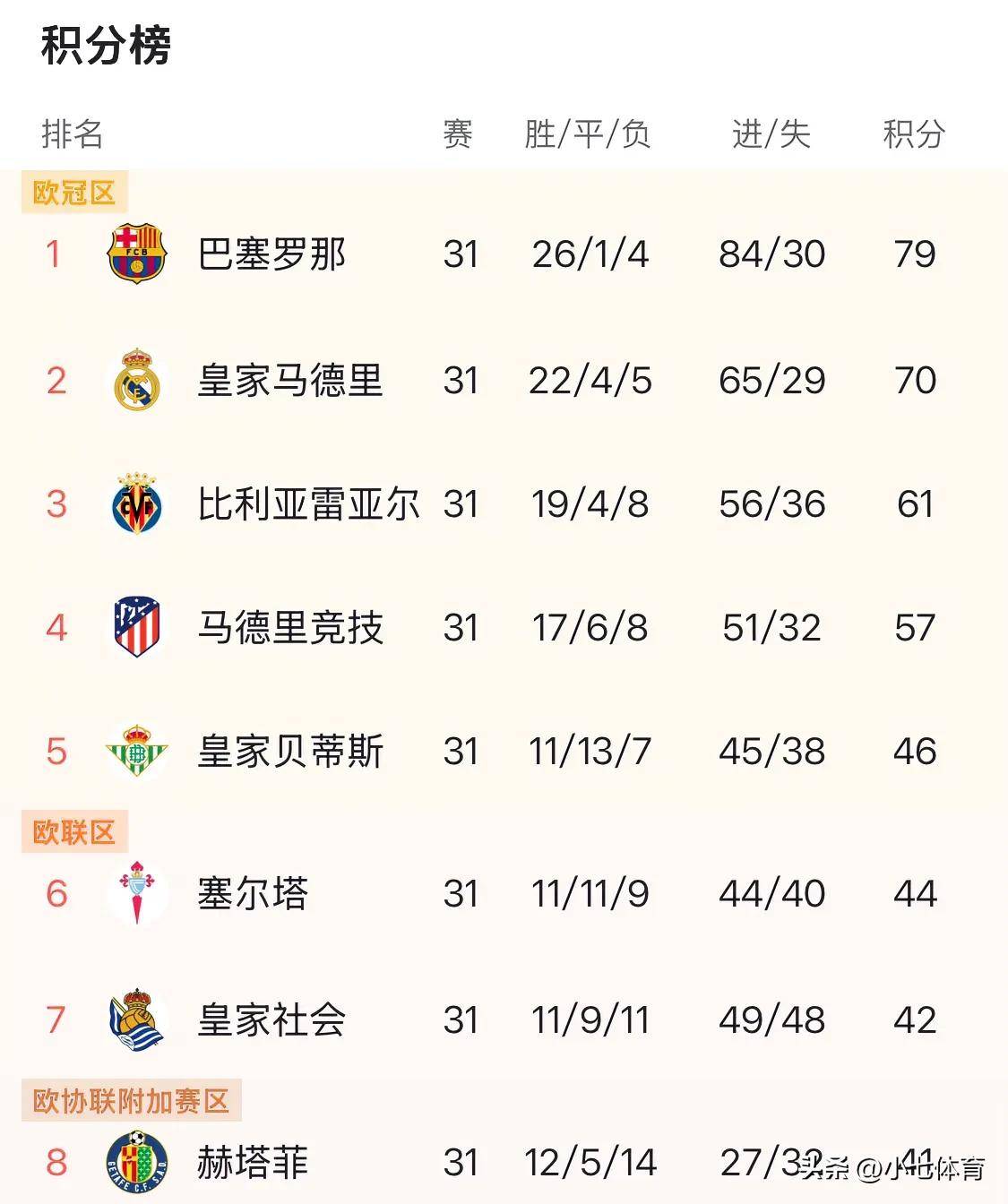 ประการที่สอง ลาลีกาตามหลังอันดับ 22 ของรายการ และถอนตัวจากการแข่งขันชิงแชมป์ก่อนแล้ว หลังจบรอบที่ 31 ของลาลีกา บาร์เซโลน่า ทำคะแนนได้ 79 แต้ม เรอัล มาดริด 70 แต้ม และแอตเลติโก มาดริด 57 แต้ม แอตเลติโก มาดริด ตามหลังอันดับ 22 ของรายการ และยังมีลีกอีก 7 รอบ และคะแนนสูงสุดทำได้เพียง 78 แต้ม ซึ่งต่ำกว่าคะแนนปัจจุบันของบาร์เซโลนาแล้ว แชมป์ทฤษฎีอาจไม่มีอยู่อีกต่อไป
