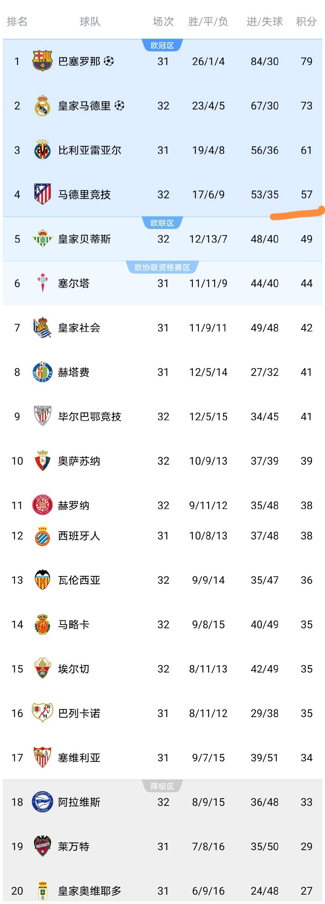 หลังเกม แอตเลติโก มาดริด ทำคะแนนได้ 57 แต้ม อันดับที่สี่ และเบติส ซึ่งอยู่ในอันดับที่ 5 ได้ 8 แต้ม และคะแนนของเอลจ์เพิ่มขึ้นเป็น 35 แต้ม อันดับเพิ่มขึ้นเป็นอันดับที่ 15 และหนีออกจากโซนตกชั้นในชั่วข้ามคืน