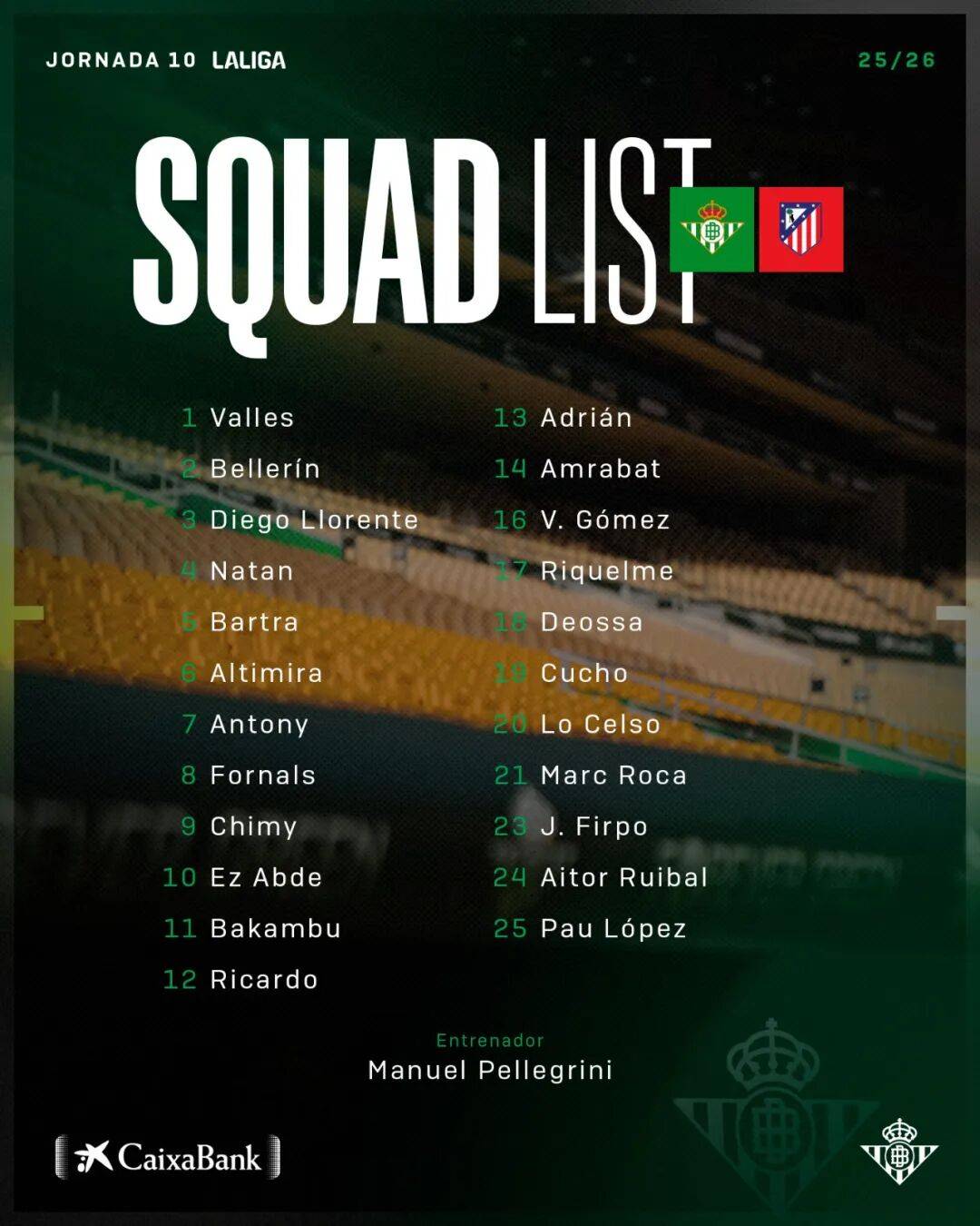 เรอัล เบติส เปิดบ้านต้อนรับการกลับมาของ อัมราบัต ในนัดนี้ ขาดเพียงคนเดียวคือ การ์เซีย และ อังเจล ออร์ติซ ที่ตกรอบบิ๊กลิสต์,อิสโก ยังอยู่ในช่วงพักฟื้น โดยล่าสุด เปเลกรินี ผู้จัดการทีมเรอัล เบติส ตกเป็นข่าวเชื่อมโยงกับตำแหน่งผู้จัดการทีมชาติชิลี ซึ่งวิศวกรได้ออกมายอมรับข่าวดังกล่าวแล้ว แต่เจ้าตัวระบุว่าไม่เกี่ยวข้องกับการเจรจาต่อสัญญาของเรอัล เบติส แต่อย่างใด เปเลกรินี วัย 72 ปี และสัญญาของเขากับ เรอัล เบติส จะหมดลงในช่วงซัมเมอร์หน้า แอนโธนี เปิดบัญชีทำประตูในศึกลาลีกา สเปน รอบที่แล้ว ซึ่งส่งสัญญาณให้ฟอร์มการเล่นกลับมาดีขึ้นเรื่อยๆ พร้อมกับเก็บเกี่ยวคะแนนและแอสซิสต์ในยูโรปาลีกรอบแรกที่เสมอกับ น็อตติงแฮม ฟอเรสต์ ไปแล้ว