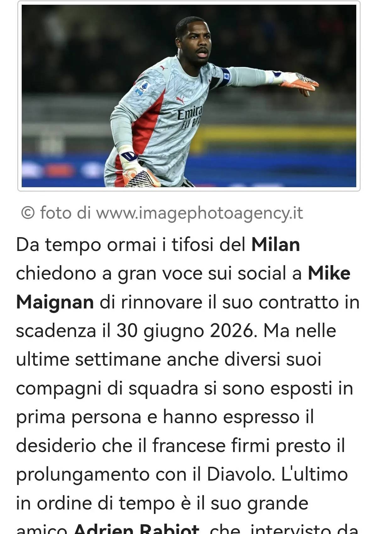 ในช่วงเวลาที่ผ่านมา ผู้สนับสนุนมิลานได้แสดงความคิดเห็นบนสื่อสังคมออนไลน์เพื่อเรียกร้องให้ไมค์ เมญ็อง ต่อสัญญาของเขา ซึ่งกำลังจะหมดอายุในวันที่ 30 มิถุนายน 2026 อย่างไรก็ตาม ในช่วงไม่กี่สัปดาห์ที่ผ่านมา เพื่อนร่วมทีมหลายคนได้แสดงความปรารถนาเป็นการส่วนตัวว่าต้องการให้ชาวฝรั่งเศสต่อสัญญากับรอสโซเนรีโดยเร็วที่สุด