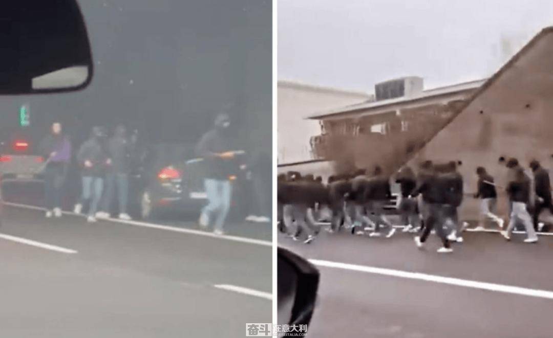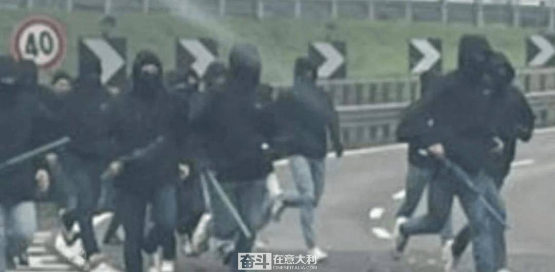 "การปะทะบนทางหลวง" ผู้สนับสนุนชาวโรมาและฟิออเรนตินาประมาณ 200 คนเข้าร่วมการปะทะด้วยอาวุธบนทางหลวง _โบโลญญา_ _ความขัดแย้ง_ _อิตาลี_