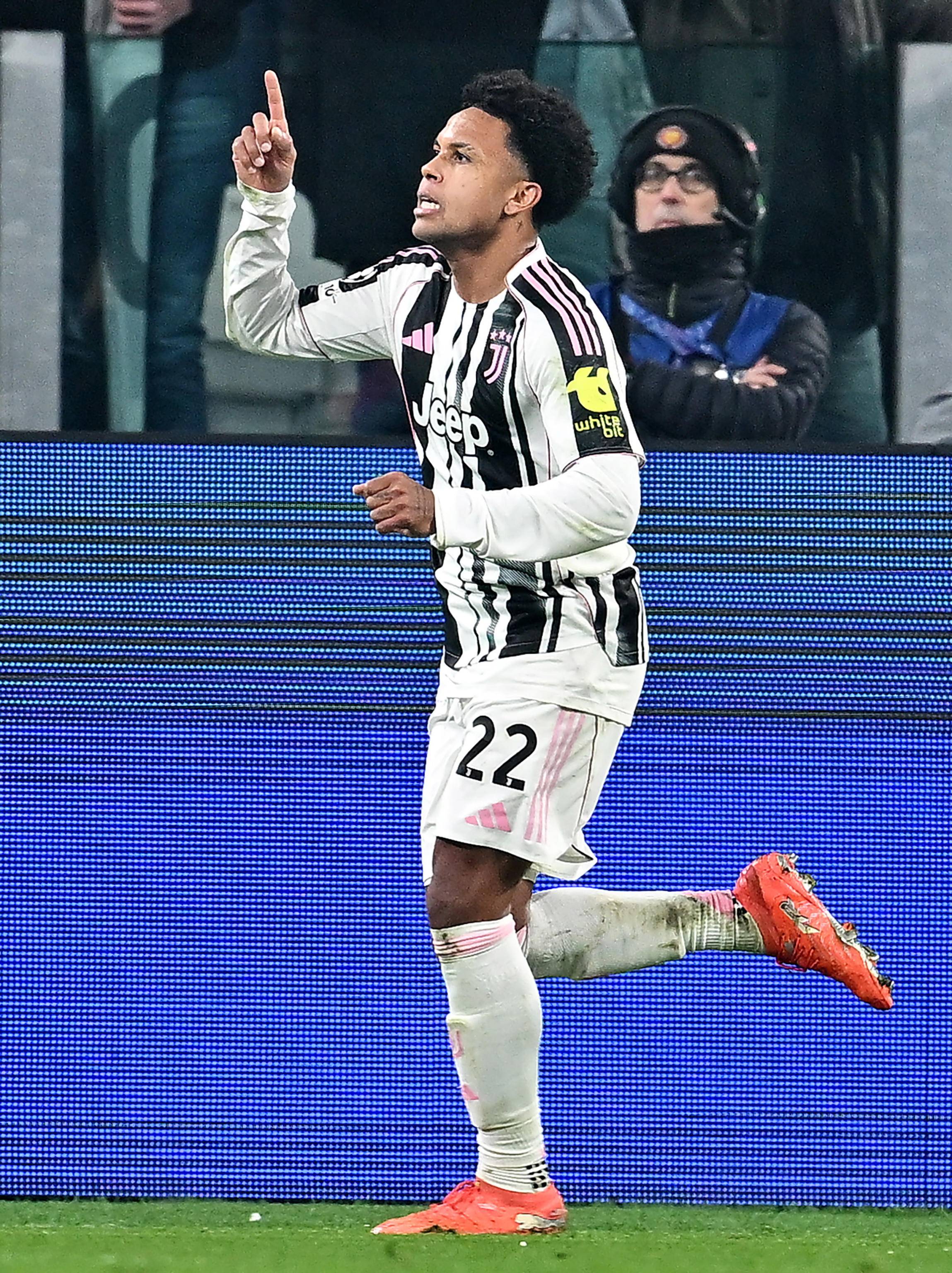 เมื่อวันที่ 21 มกราคม เวสตัน แม็คเคนนี่ นักเตะของยูเวนตุส ฉลองการทำประตู Xinhua/EPA