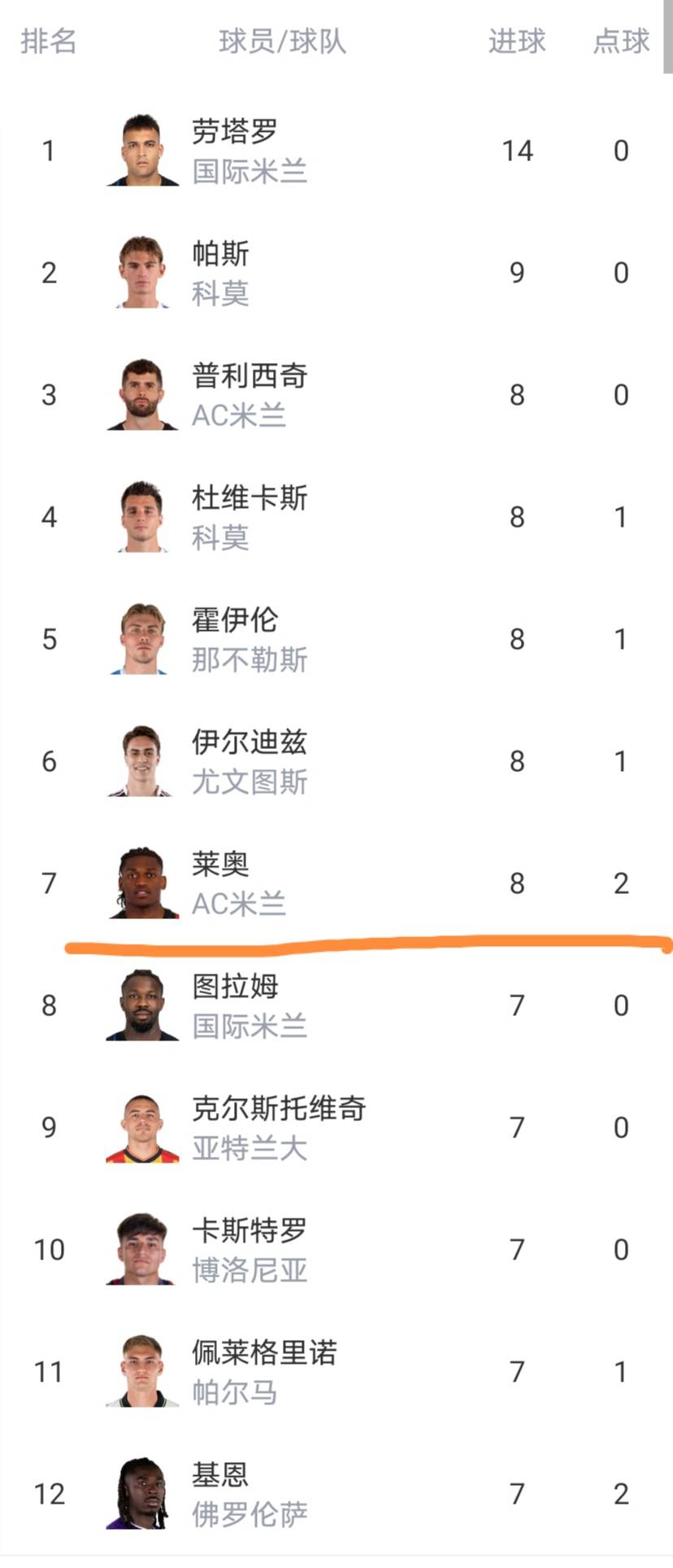 มีเพียงเลาตาโร่เท่านั้นที่ทำประตูได้ถึงสองหลักในตารางคะแนน โดยสองอันดับแรกถูกครองโดยนักเตะชาวอาร์เจนตินา