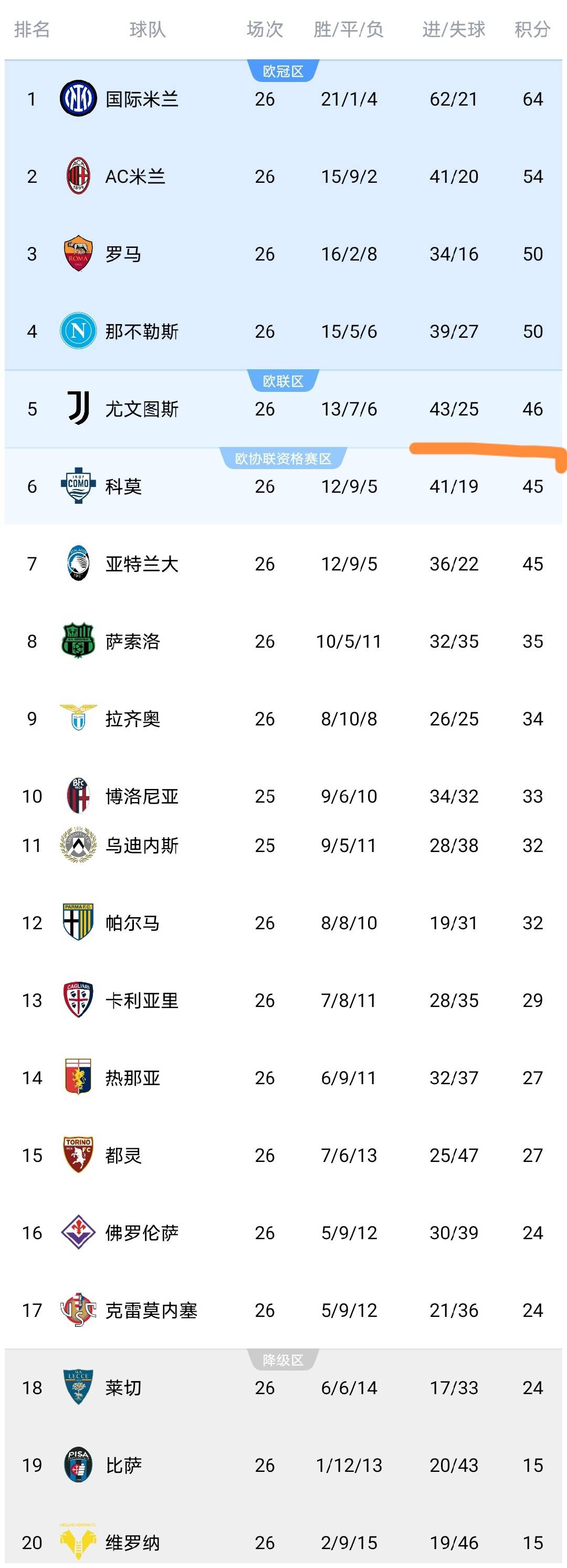 ในช่วงเช้าตรู่ของวันนี้ มีการแข่งขันสองนัดในรอบที่ 26 ของเซเรีย อา ซึ่งประกอบไปด้วย ฟิออเรนติน่า, ปิซ่า และโบโลญญ่า หลังจากการแข่งขันเหล่านี้ อันดับในลีกได้เปลี่ยนแปลงไป มาดูการเปลี่ยนแปลงกัน