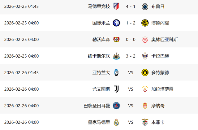 ในค่ำคืนนี้ ร่วมกับอินเตอร์ มิลาน ยังมีอีกสามทีมยักษ์ใหญ่อย่างนิวคาสเซิล ยูไนเต็ด, ไบเออร์ เลเวอร์คูเซ่น และแอตเลติโก มาดริด ที่ผ่านเข้าสู่รอบ 16 ทีมสุดท้ายได้อย่างราบรื่น แอตเลติโกถล่มคลับ บรูจจ์ 4-1 ในบ้าน ทำให้พวกเขาตกรอบด้วยสกอร์รวม 7-4 ขณะที่นิวคาสเซิลเอาชนะคาราบัค 3-2 ที่สนามเซนต์เจมส์พาร์ค ทำให้สกอร์รวมเป็น 9-3การผ่านเข้ารอบของนิวคาสเซิล ยูไนเต็ด หมายความว่าไม่มีทีมใดในพรีเมียร์ลีกที่ผ่านเข้ารอบ 16 ทีมสุดท้ายของแชมเปียนส์ลีกในฤดูกาลนี้ได้น้อยกว่า 6 ทีม ซึ่งแสดงให้เห็นถึงความแข็งแกร่งอันน่าเกรงขามของพวกเขา แม้ว่าไบเออร์ เลเวอร์คูเซ่นจะเสมอกับโอลิมเปียกอส 0-0 ในบ้าน แต่ทีมจากบุนเดสลีกาก็ผ่านเข้ารอบได้อย่างสบายๆ ด้วยชัยชนะ 2-0 ในนัดแรก