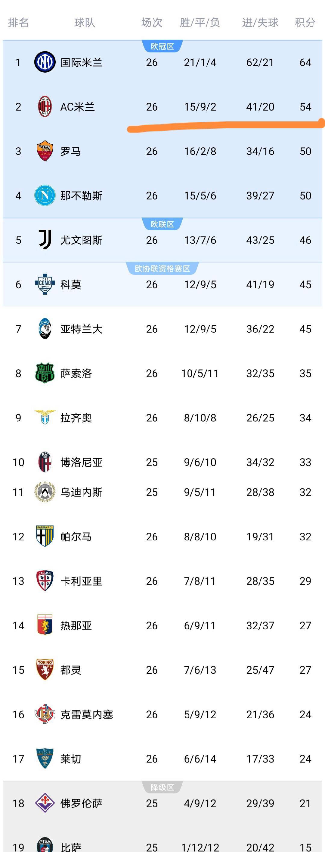 ตารางคะแนนกัลโช่ เซเรีย อา เปลี่ยนแปลง: เอซี มิลาน พ่ายแพ้ โรม่าไล่จี้อันดับสอง, นาโปลีร่วงลงตาราง _การแข่งขัน_ _ยูฟ่า แชมเปียนส์ลีก_ _อินเตอร์ มิลาน_