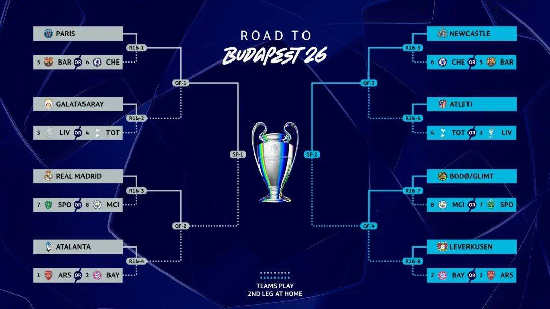 เมื่อรอบ 16 ทีมสุดท้ายเริ่มต้นขึ้น แชมเปียนส์ลีกก็ได้กลับมาสู่รูปแบบที่คุ้นเคยอีกครั้งตั้งแต่ก่อนการปรับโครงสร้าง หากจะพูดอย่างเคร่งครัดแล้ว ตั้งแต่รอบนี้เป็นต้นไป แทบไม่มีที่ว่างให้เสียใจอีกต่อไป ทีมใดก็ตามที่ผ่านเข้ามาถึงจุดนี้ ล้วนเป็นทีมยักษ์ใหญ่หรือทีมระดับแถวหน้าของวงการฟุตบอลยุโรปทั้งสิ้น แม้แต่ทีมที่ถูกมองว่าเป็นรอง หากสามารถฝ่าฟันเข้ามาได้ ก็ล้วนผ่านการทดสอบอย่างเข้มข้นและพิสูจน์ศักยภาพมาแล้ว—การพ่ายแพ้ต่อพวกเขาจึงไม่ใช่เรื่องน่าแปลกใจแต่อย่างใดยิ่งไปกว่านั้น เพียงแค่ดูรายชื่อผู้เล่นสิบหกทีมสุดท้ายก็สามารถเห็นได้ว่าไม่มีทีมใดที่ดูเป็นรองอย่างชัดเจน แม้แต่สามทีมที่ไม่ได้มาจากลีกใหญ่ทั้งห้า – สปอร์ติ้ง ลิสบอน, โบโด/กลิมท์ และกาลาตาซาราย – ต่างก็แสดงให้เห็นถึงศักยภาพด้วยผลงานที่แข็งแกร่ง