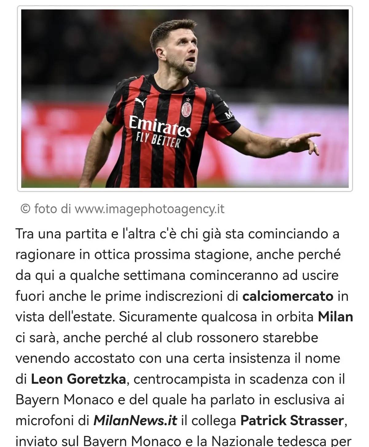 วงในของวงการได้เริ่มวางแผนสำหรับฤดูกาลถัดไปของมิลานแล้ว และภายในไม่กี่สัปดาห์ ข่าวลือแรกเกี่ยวกับตลาดซื้อขายนักเตะช่วงซัมเมอร์นี้จะเริ่มปรากฏขึ้น มิลานมีแนวโน้มที่จะเคลื่อนไหว โดยทีมรอสโซเนรี่มักถูกเชื่อมโยงกับ เลออน โกเร็ตซ์ก้า กองกลางของบาเยิร์น มิวนิค ที่กำลังจะหมดสัญญา