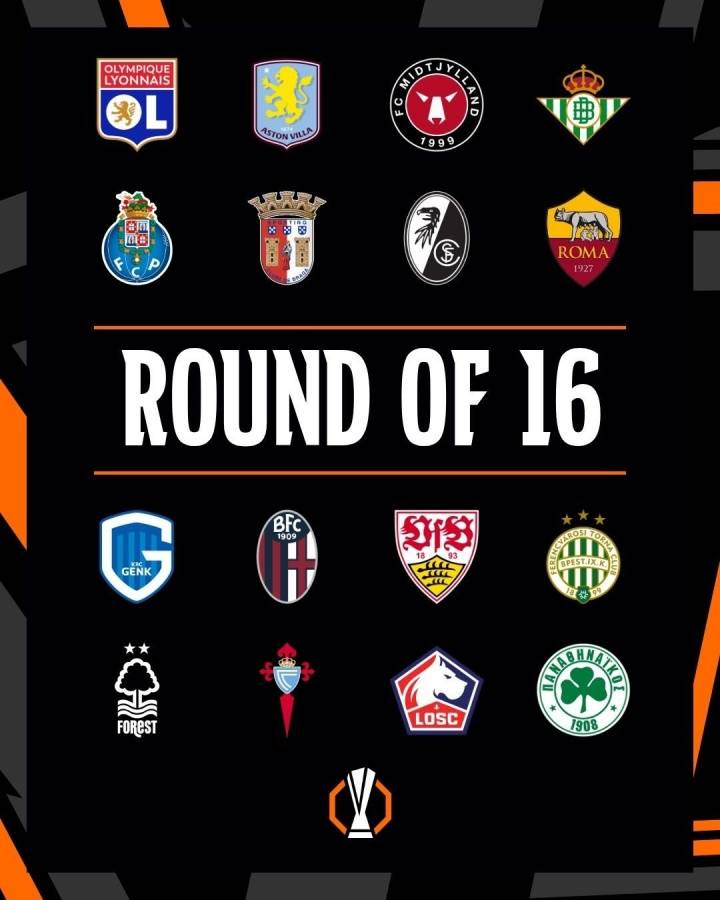 แปดทีมที่เข้ารอบ 16 ทีมสุดท้ายของยูโรปาลีกโดยตรง: ลียง, แอสตัน วิลล่า, มิดทิลลันด์, เรอัล เบติส, ปอร์โต้, บราก้า, ไฟร์บวร์ก, โรม่า