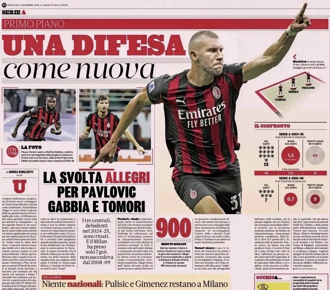 สื่ออิตาลีฮือฮา: ปาฟโลวิชกำลังก้าวขึ้นมาเป็นนักเตะดาวเด่นของมิลานอย่างต่อเนื่อง โดยผู้จัดการทีมได้ยกย่องความสามารถที่เพิ่มขึ้นของเขา