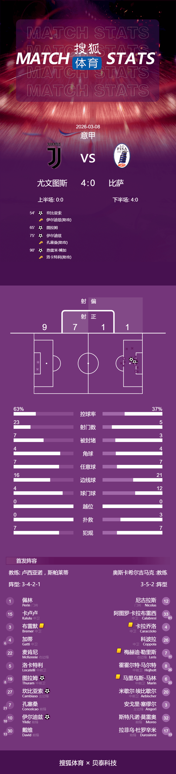 8 มีนาคม ตามเวลาปักกิ่งในรอบที่ 28 ของเซเรียอา ยูเวนตุสเล่นในบ้านกับพิซซ่าและในที่สุดก็ได้ประตูด้วย 4-0 และ 4-0 โดยมีเป้าหมายของ Cambiaso, Kevren Tulam, Ilditz และ Boga และ Juventus ยังคงอันดับที่หกด้วยคะแนน 50 คะแนนหลังจากแคมเปญนี้และ Roma ต่อหน้าเขา (เกมอาวุโส) กับ Cuomo (การแข่งขันเดียวกัน) ความแตกต่างคือ 1 คะแนน
