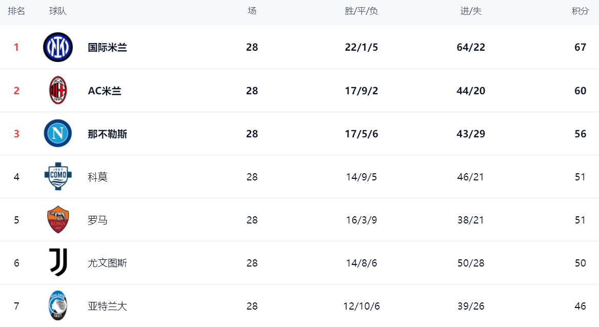 ในอันดับ อินเตอร์ มิลาน ยังคงครองตำแหน่งสูงสุด อินเตอร์ มิลาน ชนะ 22 เสมอ 1 แพ้ 5 และ 67 แต้ม หลังจากเอซี มิลานชนะ คะแนนรวมถึง 60 แต้ม อันดับสอง ชัยชนะครั้งนี้ทำให้เอซี มิลาน แชมป์แห่งความหวัง ท้ายที่สุดช่องว่างแคบลงเพียง 7 คะแนนตามหลัง หากโฟกัสการต่อสู้ของเอซี มิลาน แพ้ช่องว่างจะถึง 13 แต้ม แต่ความจริงก็คือ เอซี มิลาน ชนะ และยังมีความสงสัยในการแข่งขันชิงแชมป์ นาโปลีเป็นที่ 3 ด้วยคะแนน 56 แต้ม ที่สี่คือ Cuomo ซึ่งทำคะแนนได้ 51 คะแนน โรมที่พ่ายแพ้ยังคงเป็น 51 คะแนน อันดับที่ห้า ยูเวนตุส อันดับที่ 6 ด้วยคะแนน 50 คะแนน
