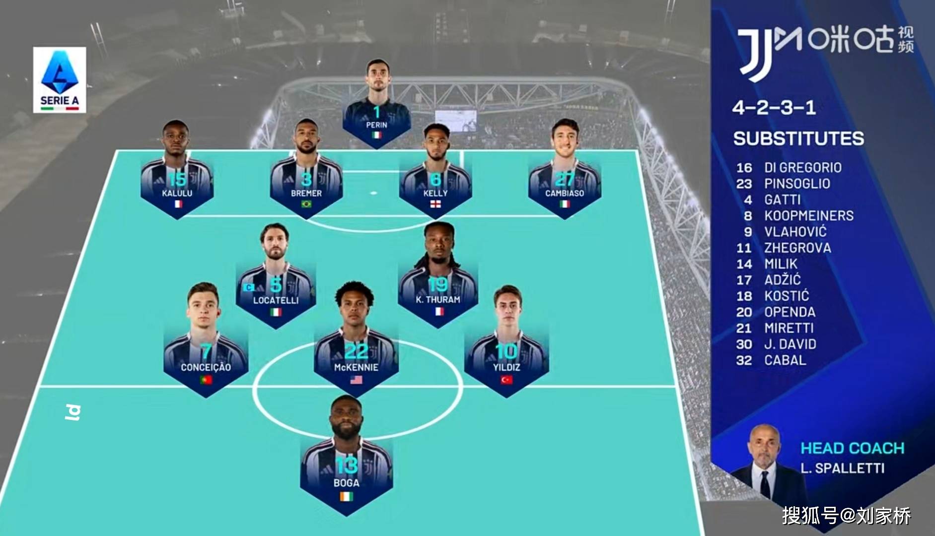 ในนาทีที่ 24 ฉากกวาดไปที่ม้านั่งยูเวนตุส วลาโฮวิช และดูเหมือนจะเตือนสปัลเลตติว่าถึงเวลาแล้วที่จะให้โอกาสเขาปรากฏตัวในครึ่งหลัง