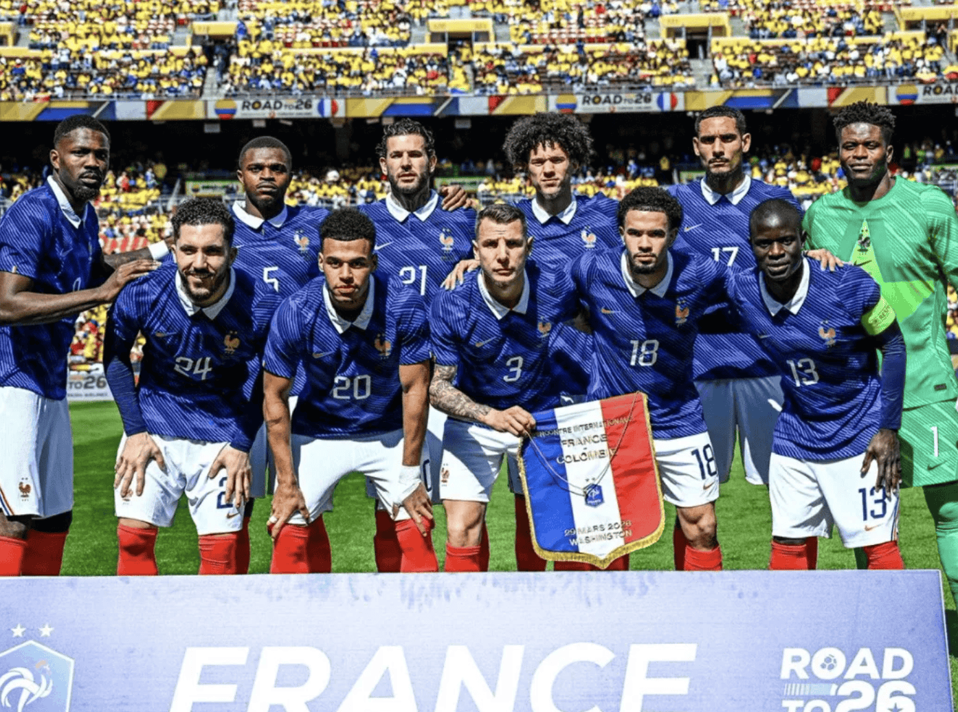 ในเกมล่าสุด ทีมฝรั่งเศส เอาชนะ ทีมบราซิล 2-1 โชว์ฟอร์มการรบสุดล้ำ วันนี้ Deschamps ได้ปล่อยให้ผู้เล่นหลักหลายคนได้พักผ่อน และ Mbappe และคนอื่นๆ ต่างก็นั่งนอกสนามเพื่อชมการต่อสู้ ถึงกระนั้น ทีมฝรั่งเศสที่มีมูลค่า 1.4 พันล้านยูโรก็ยังเล่นกับโคลอมเบียได้ง่าย