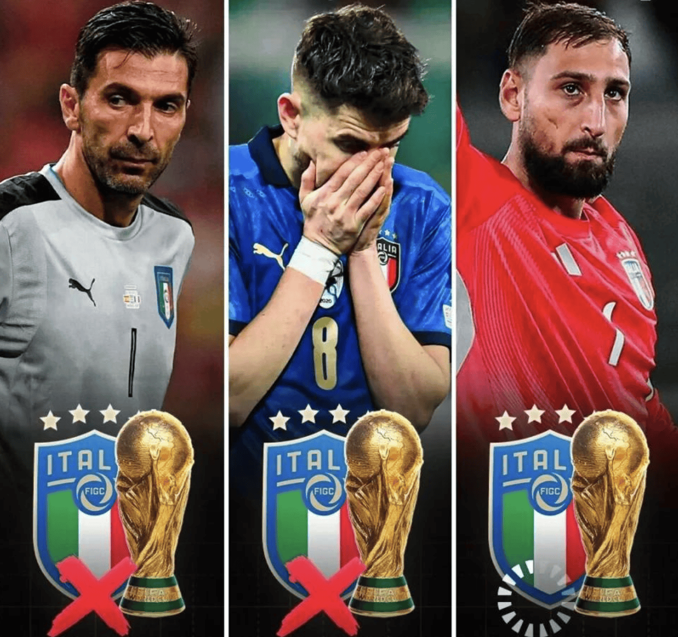 ในรอบเพลย์ออฟรอบคัดเลือกรอบโลกปี 2018 ทีมอิตาลีเล่นกับสวีเดน 0-1 และ 0-0 และแพ้คู่ต่อสู้ในสองรอบด้วยคะแนนรวม 0-1 และพลาดฟุตบอลโลก ในรอบเพลย์ออฟของรอบคัดเลือกรอบโลกครั้งสุดท้าย อิตาลีและมาซิโดเนียเหนือพบกัน และฟุตบอลโลก 4 แชมป์ 0-1 แพ้ 0-1 และพวกเขาพลาดรอบชิงชนะเลิศฟุตบอลโลกกับชาวโปรตุเกส