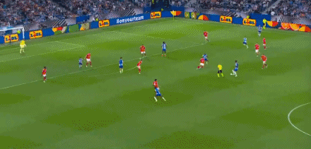 ในนาทีที่ 7 ผู้เล่นปอร์โต้ บอร์จา ซินซ์ ได้บอลในเขตโทษและถูกผู้รักษาประตูยึด