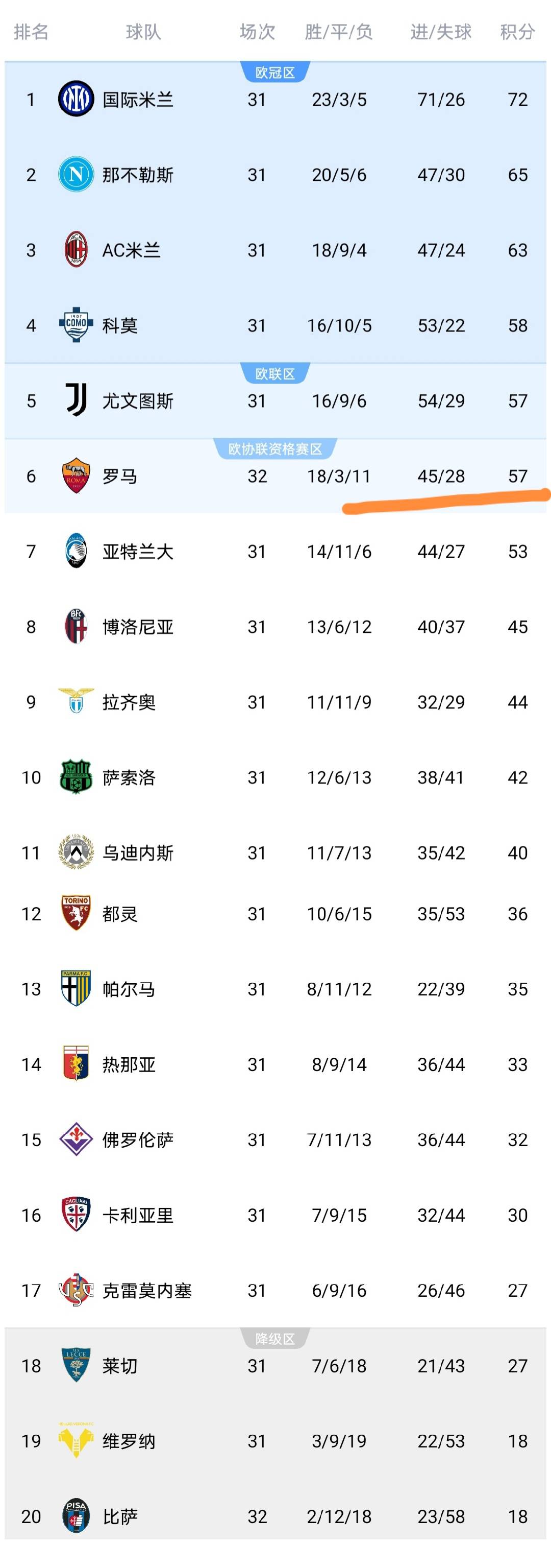 หลังจบเกม อันดับ เซเรีย อา เปลี่ยนไป เราจะเห็นว่าคะแนนของโรม่าเพิ่มขึ้นเป็น 57 คะแนน ต่อเนื่องไปอยู่ในอันดับที่ 6 คะแนนผูกกับทีมยูเวนตุส และคะแนนพิซซ่าอยู่ที่ 18 แต้มและอยู่ที่ด้านล่างต่อไป คุณสามารถดูการแข่งขันกัลโช่ของ Serie A สี่สีขาว!