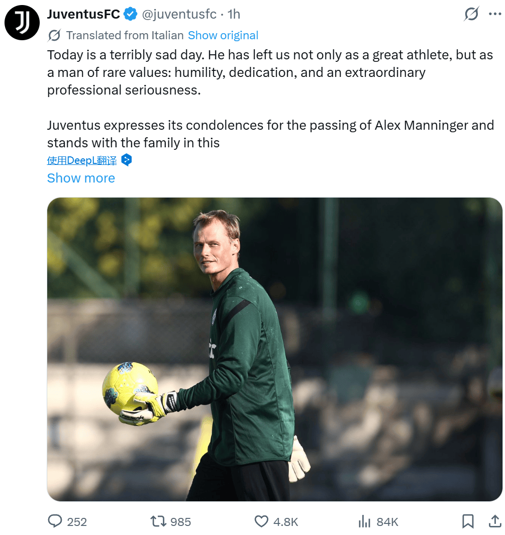 โซเชียลมีเดียอย่างเป็นทางการของสโมสรเช่น Arsenal และ Juventus ได้ตีพิมพ์บทความทีละรายการเพื่อเป็นการไว้อาลัยอย่างสุดซึ้งต่อการจากไปของอดีตผู้รักษาประตู Alexander Manninger