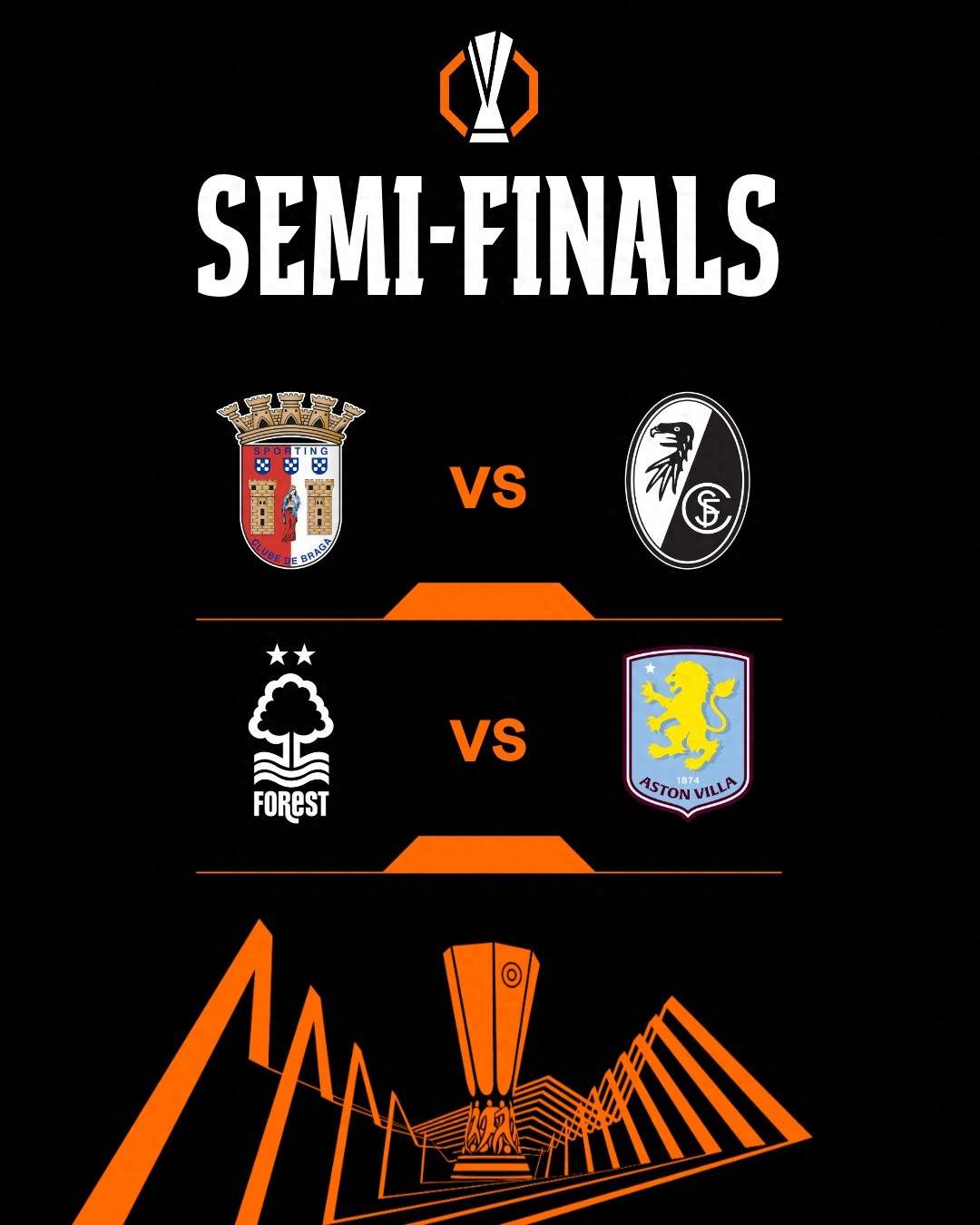 ยูโรปาลีกรอบรองชนะเลิศ: บราก้า (โปรตุเกส ซูเปอร์ลีก) ปะทะ ไฟร์บวร์ก (บันดอเวย์), น็อตติงแฮม ฟอเรสต์ ปะทะ แอสตัน วิลล่า (Single Superior Civil War) ด้วยความแข็งแกร่งของทีมยูโรป้าลีก 4 และสถานการณ์ของการแข่งขัน แอสตัน วิลล่า โค้ชของเอเมรี่เป็นทีมที่ได้รับความนิยมเป็นทีมแรกที่ได้แชมป์
