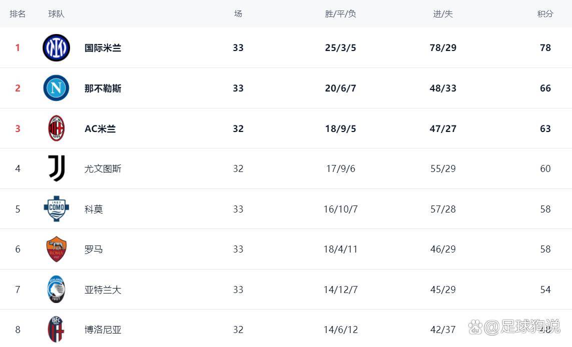 ในอันดับ อินเตอร์ มิลาน ครองอันดับ 1 ด้วยสถิติชนะ 25 เสมอ 3 แพ้ 5 แพ้ ด้วยสถิติ 78 แต้ม นำหน้าทีมอื่นไปไกลมาก หลังจากเนเปิลส์แพ้แม้ว่าเขาจะยังอยู่ในอันดับที่สองด้วยคะแนน 66 คะแนน แต่ช่องว่างกับอินเตอร์มิลานก็กว้างขึ้นเป็น 12 คะแนนและความสงสัยในการแข่งขันชิงแชมป์เกือบจะหายไป เอซี มิลาน รั้งอันดับ 3 ด้วยคะแนน 63 รองลงมาคือ ยูเวนตุส 60 แต้ม อันดับที่สี่ Cuomo ได้คะแนน 58 คะแนน อันดับที่ห้า โรม่ายังสะสม 58 แต้มหลังจากเสมอกับแอตแลน โดยอยู่ในอันดับที่หกและห่างจากแชมเปียนส์ลีก 2 แต้ม แอตแลนต้าอยู่ในอันดับที่เจ็ดด้วยคะแนน 54 คะแนน ในรอบนี้ของกัลโช่ บทสนทนาระหว่างทีมที่แข็งแกร่งนั้นยอดเยี่ยมและไม่เป็นที่นิยม ซึ่งได้ผ่านการเปลี่ยนแปลงเล็กน้อยในรูปแบบของอันดับ