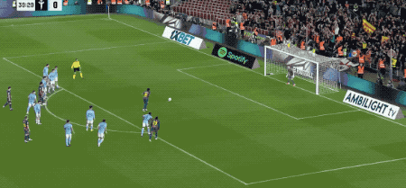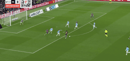น้อยกว่า 20 วินาทีหลังจากเปิด Ferran บินเพื่อหยุดการส่งของ Alonso Yamal หลบแนวรับ จากนั้นการยิงก็กว้างเล็กน้อย