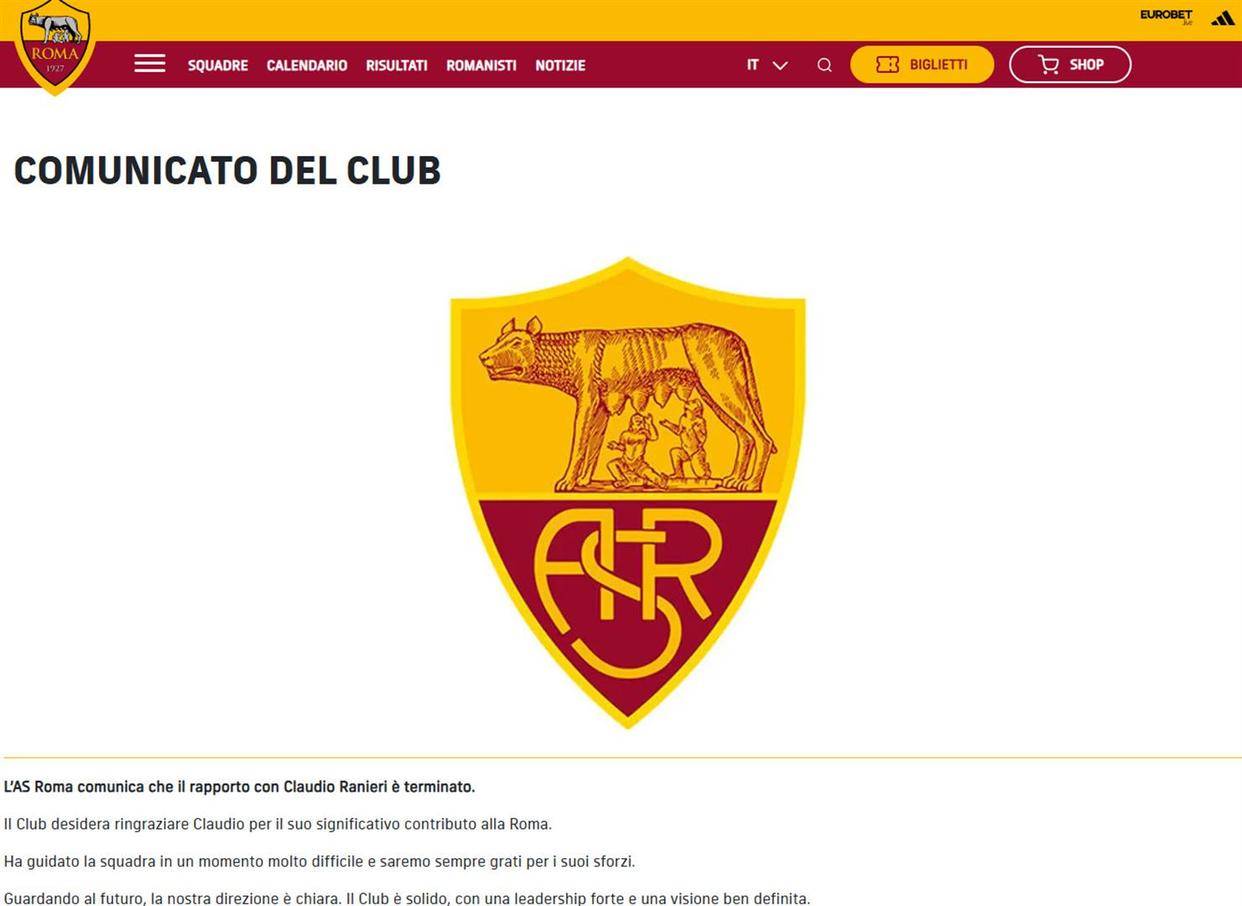 การประกาศอย่างเป็นทางการเมื่อวันศุกร์ดูเหมือนจะประกาศการสิ้นสุดการเป็นหุ้นส่วนอย่างสงบ แต่เบื้องหลังคือการต่อสู้ด้วยพลังที่กินเวลานานหลายเดือน และพลังของดาบ แสง ดาบ และเงาก็ยุติลงในที่สุด สโมสรโรมันขอบคุณ Claudio Ranieri สำหรับการมีส่วนร่วมของเขาในถ้อยคำที่เป็นทางการที่สุด จากนั้นจึงเชิญเขาออกจากตำแหน่งที่ปรึกษาอาวุโสโดยไม่ลังเลใจ วลี "โรมจะเป็นคนแรกเสมอ" ในการประกาศฟังดูฟังดูสูง แต่จริงๆ แล้วเป็นกริชที่แม่นยำซึ่งแทงผู้แพ้ของการต่อสู้แบบประจัญบานนี้โดยตรง ชื่อของผู้ชนะเขียนไว้อย่างชัดเจนเมื่อสิ้นสุดการประกาศ - จันลูก้า กัสเปรินี สโมสร "คนสนิทของถนนที่กำลังจะลงมือ" ละครในศาลที่นำแสดงโดยชายชราสองคน กับหนึ่งในนั้น ออกฉายแล้ว และจบสิ้นเลือด