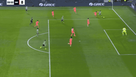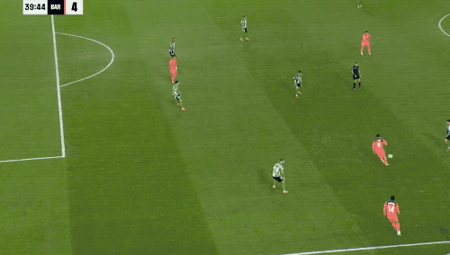 ในนาทีที่ 39 บาร์เซโลนาได้ครองบอลสูงขึ้นในสนาม เฟร์ราน ตอร์เรส ยิงเข้าประตูจากนอกกรอบเขตโทษ ทำให้เขาทำแฮตทริกได้สำเร็จ และตามหลังเอ็มบัปเป้เพียง 5 ประตู
