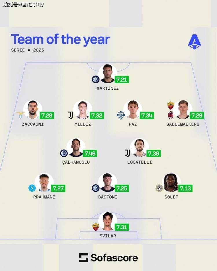 เมื่อปี 2025 กำลังจะสิ้นสุดลงและปี 2026 กำลังจะเริ่มต้นขึ้น Sofascore ได้รวบรวมทีมยอดเยี่ยมแห่งปีของเซเรีย อา สำหรับฤดูกาลนี้ โดยมีผู้เล่นจากอินเตอร์ มิลาน สามคนติดทีม