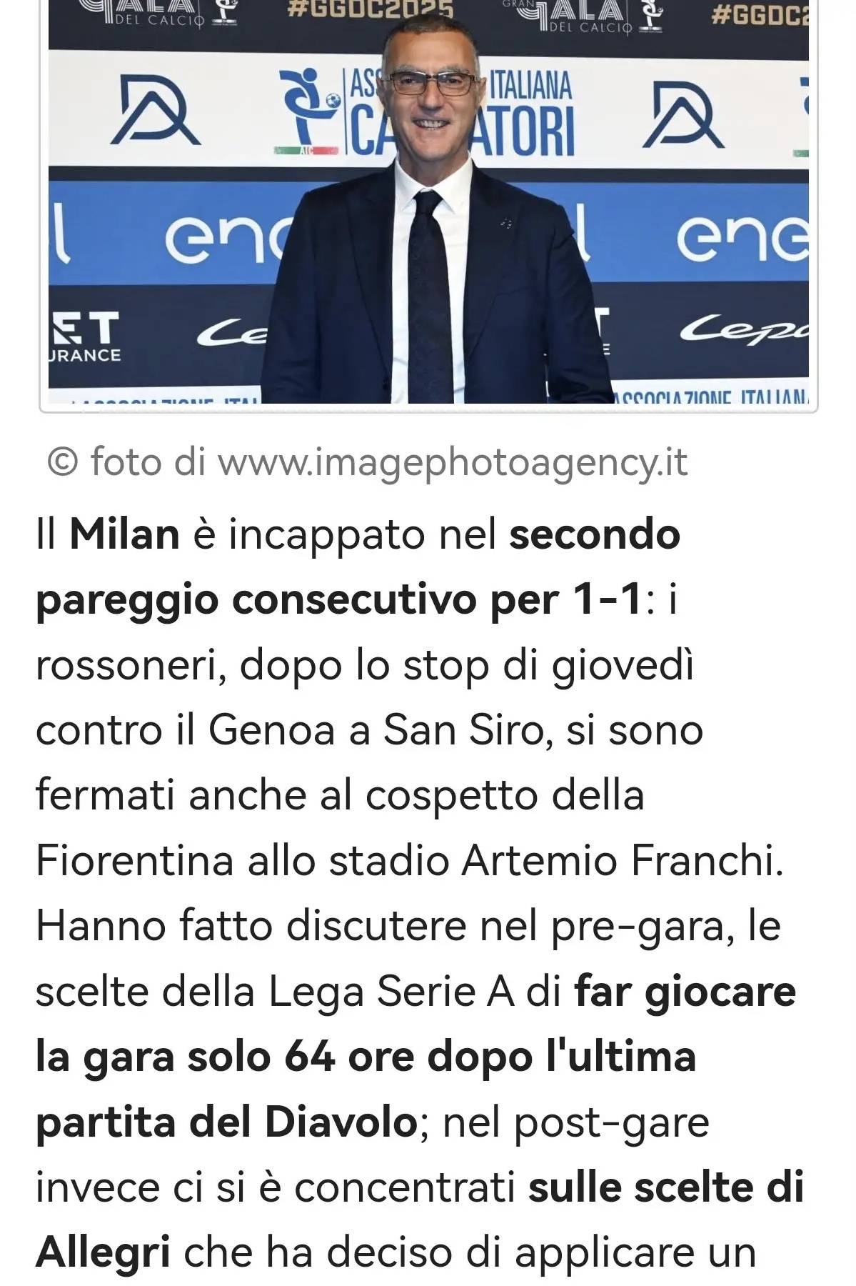 เซเรีย อา: มิลาน เสมอ 1-1 กับ ฟิออเรนติน่า; หลังจบการแข่งขัน นักข่าวชื่อดังตั้งคำถามเกี่ยวกับการจัดโปรแกรมการแข่งขัน เรียกร้องให้มีการชี้แจง_อัลเลกรี_การแข่งขัน_คู่แข่ง