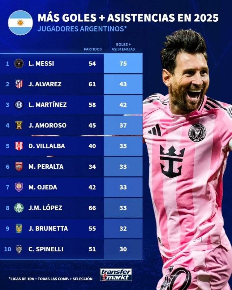 เมสซี่ ยังคงเป็นนักเตะที่ดีที่สุดของอาร์เจนตินา! เมื่อปีที่แล้วเขาอยู่ในลีกของตัวเองภายในทีม! ความสามารถของ_Álvarez_ ในลีกชั้นนำทั้งห้าของยุโรป