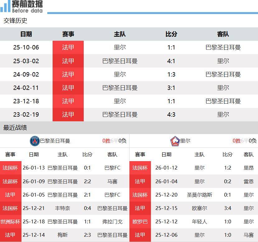 ประการแรก:สถานการณ์ของทีม! หลังจากผ่านไป 17 นัดในลีกเอิง ปารีส แซงต์-แชร์กแมง อยู่ในอันดับที่สองด้วยคะแนน 39 คะแนน จาก 12 ชนะ 3 เสมอ และ 2 แพ้ ตามหลังผู้นำอย่างเลนส์อยู่ 1 คะแนน ลีลล์ อยู่ในอันดับที่สี่ด้วยคะแนน 32 คะแนน จาก 10 ชนะ 2 เสมอ และ 5 แพ้ โดยมีคะแนนเท่ากับมาร์กเซยที่อยู่ในอันดับสามในการแข่งขันลีกเอิงนัดก่อน ปารีส แซงต์-แชร์กแมง เอาชนะ ปารีส เอฟซี ไปอย่างหวุดหวิด 2-1 ในบ้าน ทำให้พวกเขาชนะติดต่อกันในลีกเป็นนัดที่สาม เมื่อสุดสัปดาห์ที่ผ่านมา พวกเขาเสมอกับ มาร์กเซย 2-2 ในศึกซูเปอร์คัพฝรั่งเศส ก่อนจะเอาชนะในการดวลจุดโทษ อย่างไรก็ตาม ในช่วงกลางสัปดาห์ พวกเขาต้องพบกับความพ่ายแพ้อย่างน่าตกใจต่อ ปารีส เอฟซี 0-1 ในบ้าน ในศึกเฟร้นช์ คัพ ทำให้พวกเขาตกรอบในรอบ 16 ทีมสุดท้าย ซึ่งถือเป็นหนึ่งในความพลิกล็อกครั้งใหญ่ของวงการฟุตบอลในสัปดาห์นี้ลีลล์พ่ายแพ้คาบ้านต่อแรนส์ 0-2 ตามมาด้วยการแพ้คาบ้านต่อลียง 1-2 ในศึกคูเป้ เดอ ฟรองซ์ เมื่อวันจันทร์ที่ผ่านมา ทำให้พวกเขาต้องยุติเส้นทางในถ้วยรายการนี้ตั้งแต่รอบ 32 ทีมสุดท้าย