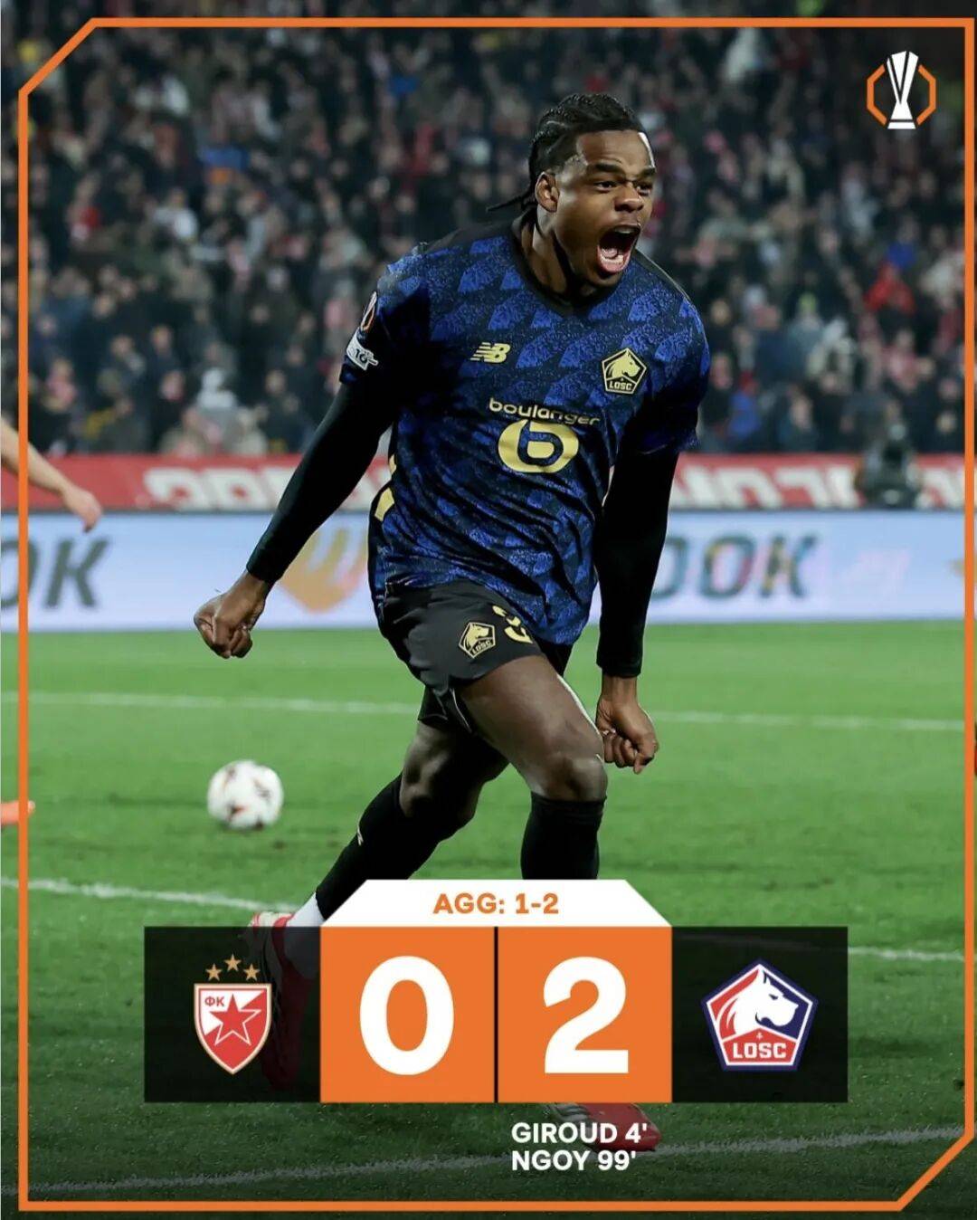 ในนัดที่สองของรอบ 16 ทีมสุดท้ายของยูโรปาลีก, ลีลล์เอาชนะเรดสตาร์เบลเกรด 2-0 ทำให้ชนะด้วยสกอร์รวม 2-1 และผ่านเข้าสู่รอบต่อไป
