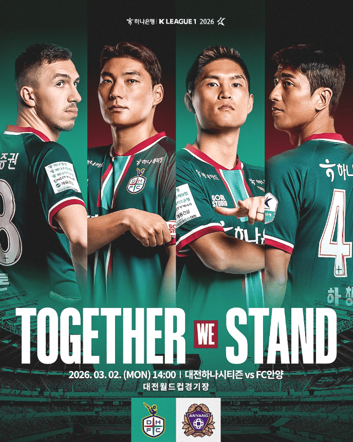เหลือการแข่งขันเพียงนัดเดียวในรอบเปิดฤดูกาล 2026 K1 League ทีม Daejeon Hana Citizen จะเปิดบ้านต้อนรับ FC Anyang ทีมเซอร์ไพรส์จากฤดูกาลที่แล้วในวันพรุ่งนี้ ทีม Jeonbuk เพิ่งพ่ายแพ้ไปก่อนหน้านี้ – Daejeon จะทำตามรอยหรือไม่? บางทีการแข่งขันในวันนี้อาจได้ชี้ชะตาผลการแข่งขันในวันพรุ่งนี้ไปแล้ว ลีกจะเติบโตได้ด้วยความประหลาดใจ ความไม่คาดคิด และสิ่งที่ไม่คาดฝัน – นั่นคือสิ่งที่ทำให้มันน่าตื่นเต้นอย่างแท้จริง ลีกที่มีสุขภาพดีไม่ใช่ลีกที่ถูกครอบงำโดยทีมเดียว แต่เป็นลีกที่หลายทีมสามารถเติบโตได้!