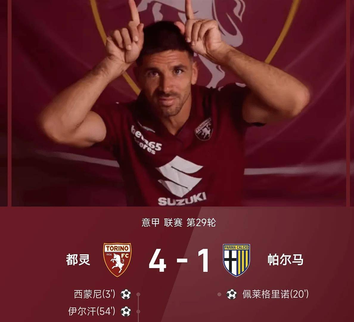 เกมเข้าสู่ช่วงทดเวลาเจ็บ และดูวาน ซาปาต้า จอมเก๋าของ ตูริน ยิงออกจากกรอบเขตโทษ คลื่นโลก! 4 ต่อ 1 ชัยชนะอันแสนสุข สำหรับตูริน สามแต้มนั้นกระหายน้ำเกินไป และแต้มอยู่ห่างจากปาร์ม่าเพียง 1 แต้ม และแรงกดดันจากการตกชั้นก็ลดลงมากในทันที สำหรับปาร์ม่าไม่เพียงแพ้ประตู แต่ยังยุติโมเมนตัมของลีกที่ไม่แพ้ใครทั้งห้ารอบของเขาและตำแหน่งที่อยู่ตรงกลางนั้นไม่มั่นคง