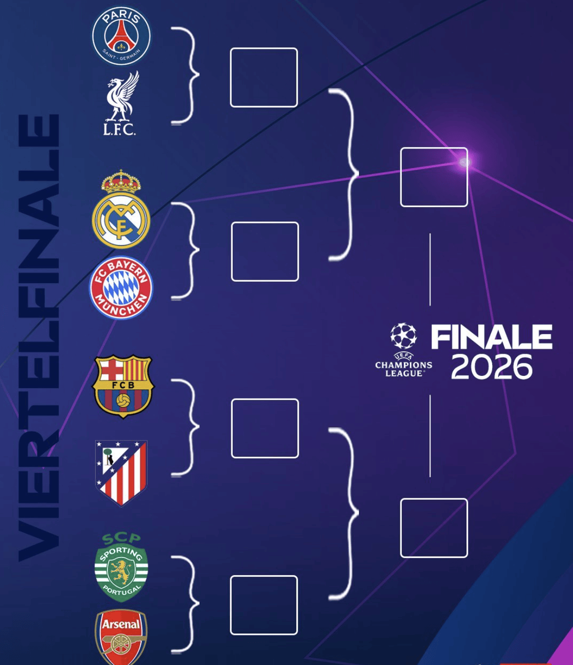 ในหมู่พวกเขา ปารีส เรอัล มาดริด บาร์เซโลนา และโปรตุเกส ล้วนเป็นคนแรกที่เล่นในบ้านแล้วเล่นออกไป รอบรองชนะเลิศสองรอบคือ 7/8 เมษายน และ 14/15/15, 2026 ตามลำดับ นอกจากนี้รอบรองชนะเลิศทั้งสองรอบจะมีขึ้นในวันที่ 28/29 เมษายนและ 5/6 พฤษภาคม 2026 รอบชิงชนะเลิศคือ 30 พฤษภาคม 2026 ในบูดาเปสต์