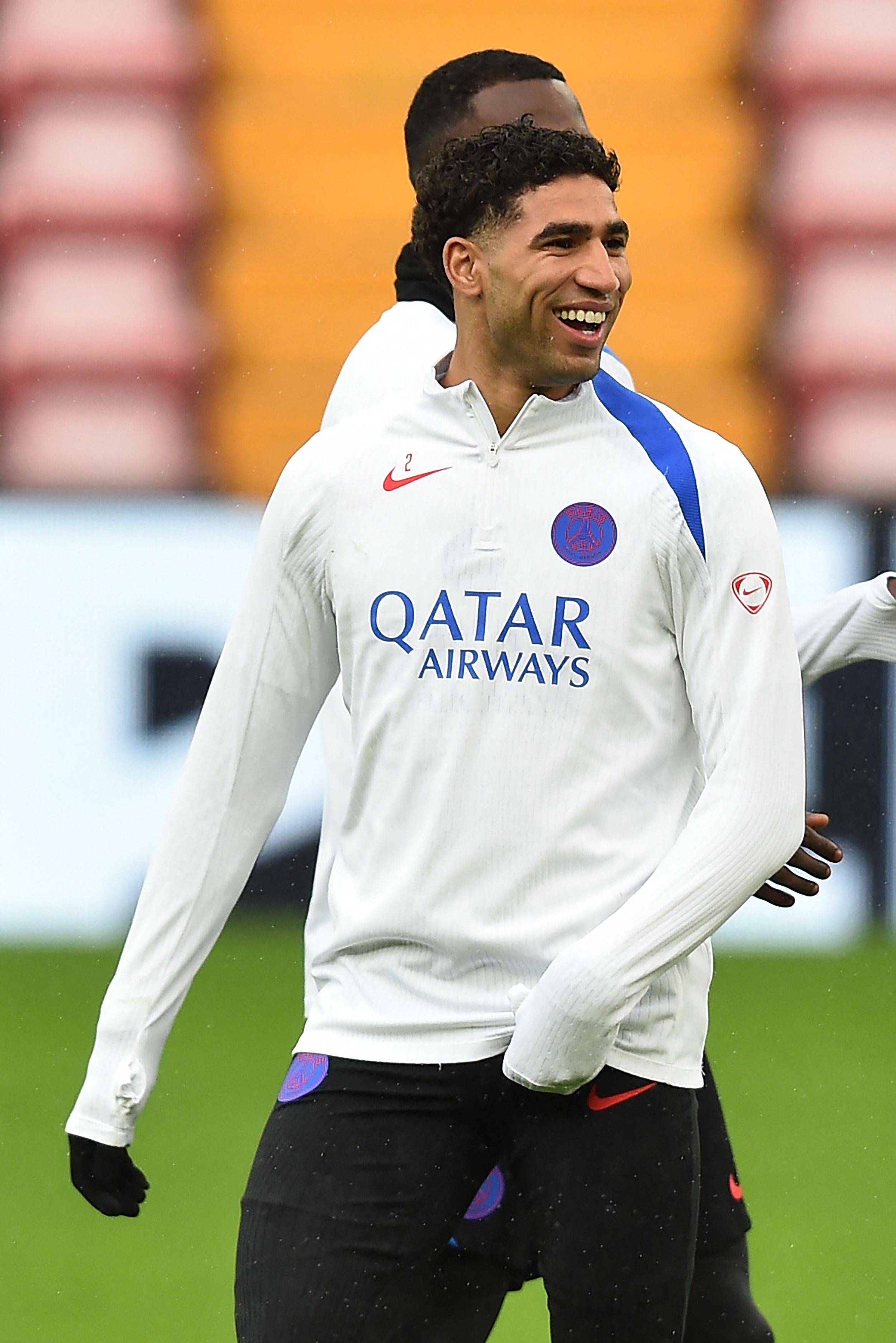 Ashraf ผู้เล่น Paris Saint-Germain กำลังฝึกซ้อมในวันที่ 13 เมษายน สำนักข่าวซินหัว/ฝรั่งเศส ใหม่