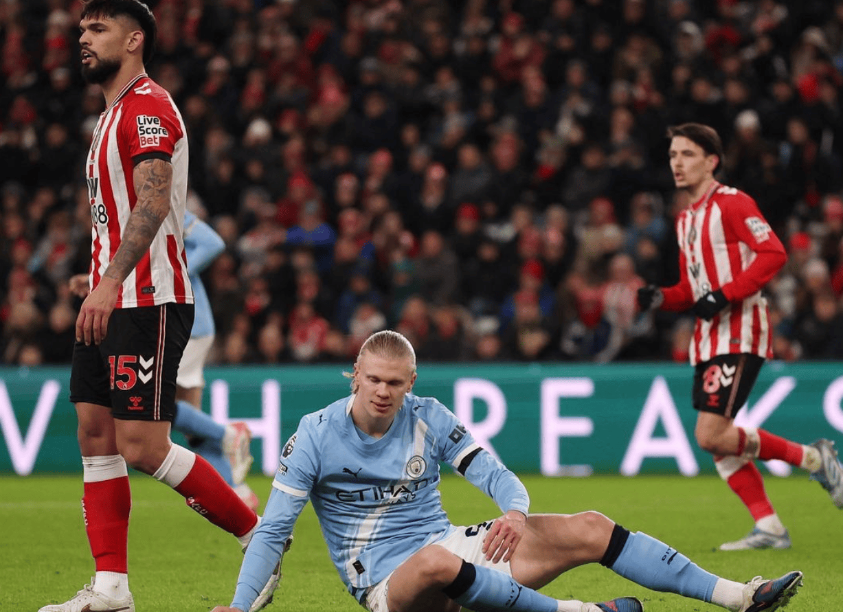 การแข่งขันพรีเมียร์ลีกนัดที่ 19 แมนเชสเตอร์ ซิตี้ เดินทางไปเยือนซันเดอร์แลนด์ที่เพิ่งเลื่อนชั้นขึ้นมาใหม่ ในครึ่งแรก เบอร์นาร์โด ซิลวา ทำประตูได้แต่ถูกจับล้ำหน้า, บอร์เรย์ พลาดโอกาสยิงประตูแบบตัวต่อตัว, ฮูม ยิงข้ามคานจากระยะใกล้ และฮาแลนด์ พลาดโอกาสทองหลังจากพักครึ่ง ซาวิโญ่พลาดโอกาสหลายครั้ง โดกุถูกสกัดกั้น และกวาร์ดิโอลยิงชนเสา สุดท้ายแมนเชสเตอร์ ซิตี้ เสมอกับซันเดอร์แลนด์ 0-0 ทำให้พวกเขาหยุดสถิติชนะติดต่อกัน 8 นัดในทุกการแข่งขัน