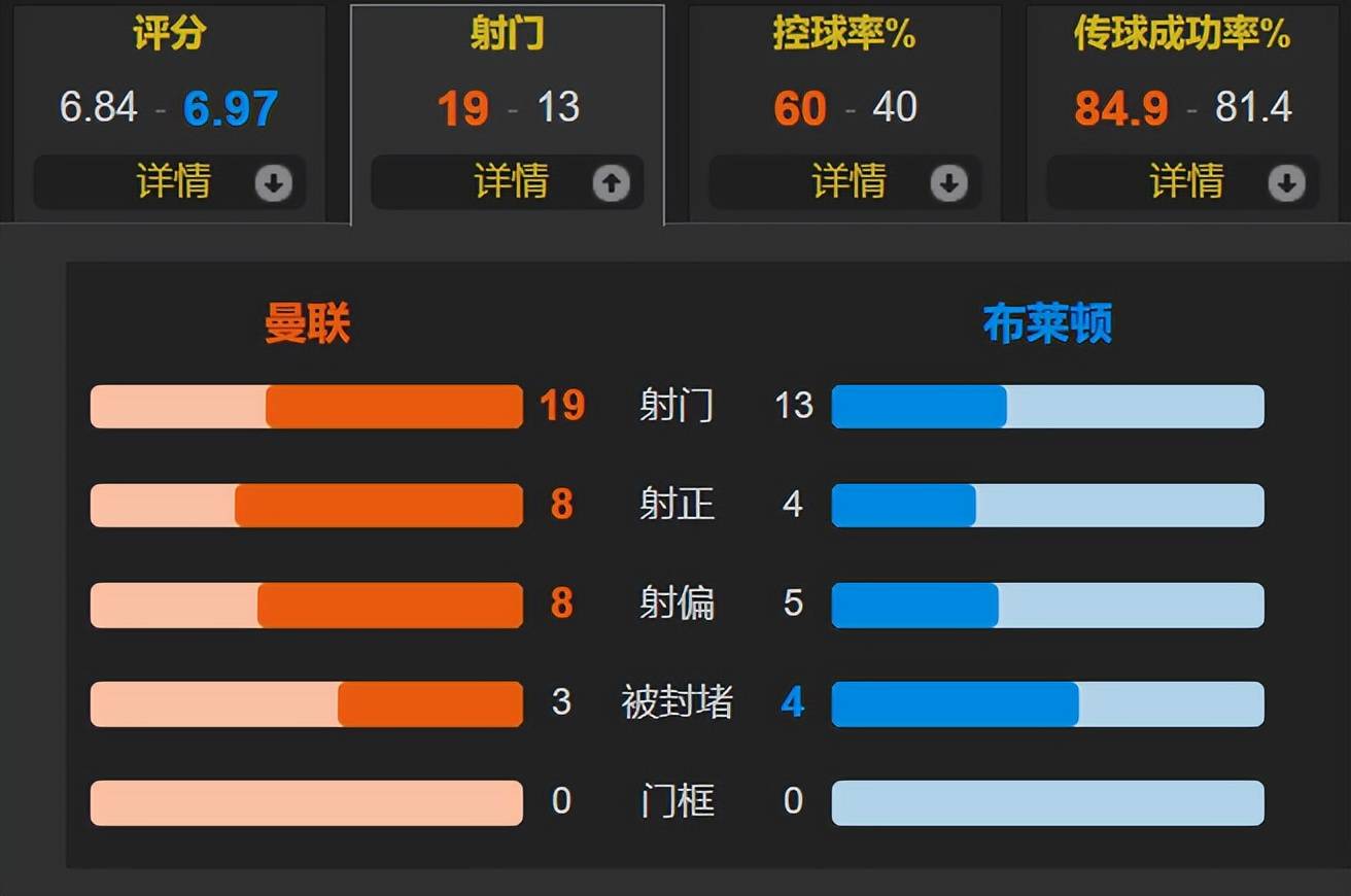 แมนเชสเตอร์ ยูไนเต็ด ครองบอลเหนือกว่าในบ้าน โดยทำจำนวนการยิงและยิงตรงกรอบมากกว่า แต่ไม่สามารถเปลี่ยนความเหนือกว่าเป็นประตูได้ สุดท้ายต้องพ่ายแพ้ไป ในการแข่งขันนี้ ยูไนเต็ดครองบอล 60% ยิงทั้งหมด 19 ครั้ง โดยมี 8 ครั้งที่เข้ากรอบ ขณะที่ไบรท์ตันยิงทั้งหมด 13 ครั้ง โดยมี 4 ครั้งที่เข้ากรอบ