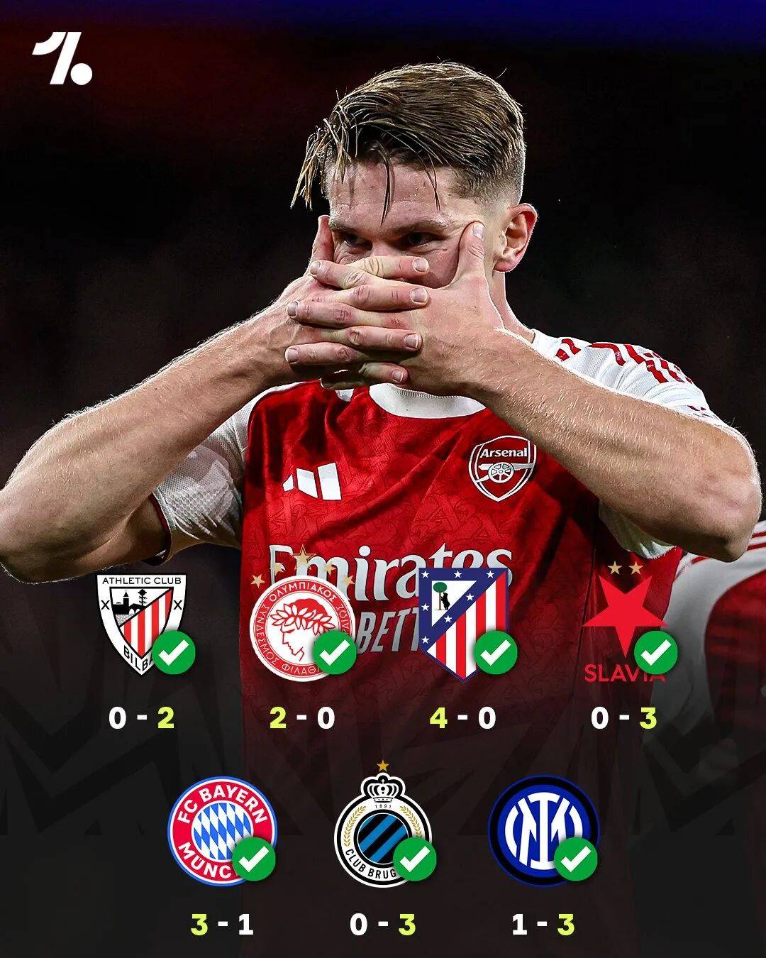 ไม่ต้องสงสัยเลยว่าการปะทะกันระหว่างอินเตอร์ มิลาน และอาร์เซนอล เป็นการแข่งขันที่โดดเด่นที่สุดของรอบนี้ในแชมเปียนส์ลีก เป็นการเผชิญหน้าครั้งยิ่งใหญ่ระหว่างสองทีมจ่าฝูงของลีก และเป็นการทดสอบความแข็งแกร่งของทีมปืนใหญ่อย่างแท้จริงการแข่งขันนี้แสดงให้เห็นถึงความสูสีกันโดยรวม ภายในยี่สิบนาทีแรก กาเบรียล เชซุส และโจสโก้ กวาร์ดิออล ต่างก็ทำประตูให้กับทีมของตนได้สำเร็จแล้ว อย่างไรก็ตาม ความเฉียบคมในการจบสกอร์ของอาร์เซนอลที่เหนือกว่าค่อย ๆ ทำให้เกมเปลี่ยนเป็นฝ่ายได้เปรียบ โดยเชซุสยิงสองประตู และทีมของมิเกล อาร์เตต้าปิดฉากชัยชนะด้วยประตูเด็ดจากมิเกล อาร์เตต้าเอง ส่งผลให้อาร์เซนอลคว้าชัยชนะในศึกยูฟ่า แชมเปียนส์ลีก ติดต่อกันเป็นนัดที่เจ็ด