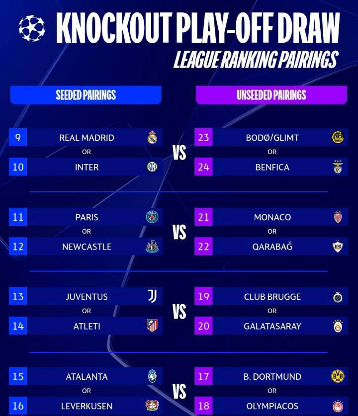 หากการแข่งขันเพลย์ออฟไม่มีเหตุการณ์พลิกล็อกครั้งใหญ่ ทีมที่ผ่านเข้ารอบทั้งแปดจะพบกับทีมอันดับแปดจากลีกสูงสุด ซึ่งจะทำให้ได้รายชื่อทีมที่น่าเกรงขามสำหรับรอบ 16 ทีมสุดท้าย ทีมที่ผ่านเข้ารอบก่อนรองชนะเลิศยูฟ่าแชมเปียนส์ลีกในขณะนี้ประกอบด้วย อาร์เซนอล, บาเยิร์น มิวนิค, ลิเวอร์พูล, ท็อตแน่ม ฮ็อตสเปอร์, บาร์เซโลนา, เชลซี, สปอร์ติ้ง ซีพี และแมนเชสเตอร์ ซิตี้ในขณะเดียวกัน ทีมม้ามืดอย่าง Bodø/Glimt และ Qarabağ ได้แสดงผลงานที่โดดเด่นในฤดูกาลนี้ ทำให้ทีมยักษ์ใหญ่ดั้งเดิมต้องระมัดระวังตัวจากการพลิกโผที่อาจเกิดขึ้น การแข่งขันสัญญาว่าจะเข้มข้นยิ่งขึ้น สรุปแล้ว รอบเพลย์ออฟของแชมเปียนส์ลีกที่กำลังจะมาถึงจะมีการเผชิญหน้าทางยุทธวิธีระหว่างคู่แข่งคลาสสิกที่เต็มไปด้วยความขัดแย้ง พร้อมกับความตื่นเต้นที่คาดเดาไม่ได้และความหลงใหล – ทำให้แฟนๆ ไม่ควรพลาดติดตามอย่างใกล้ชิด