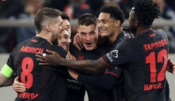 ไบเออร์ เลเวอร์คูเซ่น คว้าชัยชนะ 2-0 ในเกมเยือนเหนือโอลิมเปียกอส โดยแพทริค ชิค ทำประตูได้สองครั้ง กลายเป็นนักเตะคนที่สองของสโมสรที่ทำประตูได้สองลูกในเกมน็อคเอาท์ของยูฟ่า แชมเปียนส์ลีก กรณีก่อนหน้านี้เกิดขึ้นเมื่อไมเคิล บัลลัค ทำสถิตินี้ได้ในรอบก่อนรองชนะเลิศปี 2002 กับลิเวอร์พูล