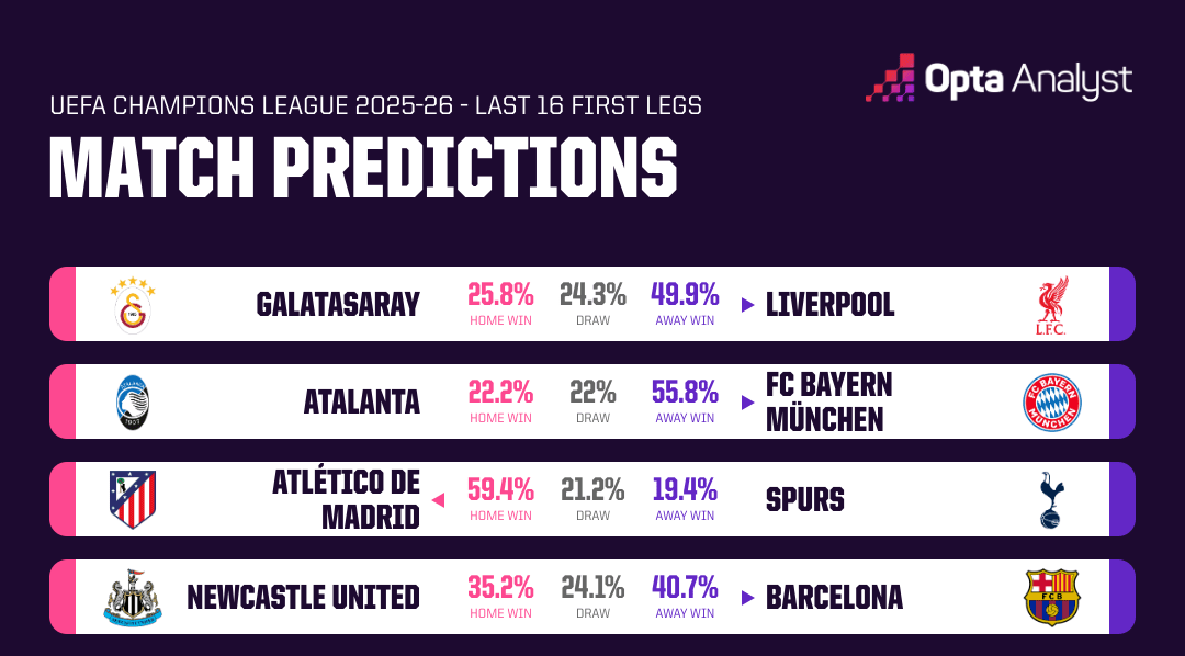 ในสี่เกมของวันอังคาร ทีมที่ดีที่สุดที่ออปตาซูเปอร์คอมพิวเตอร์มีแนวโน้มมากที่สุดคือแอตเลติโก มาดริด ซึ่งจะพบกับท็อตแนมที่เมโทรโพลิแทน