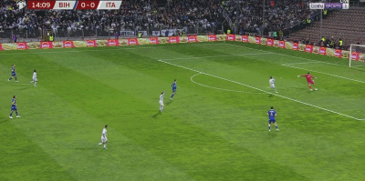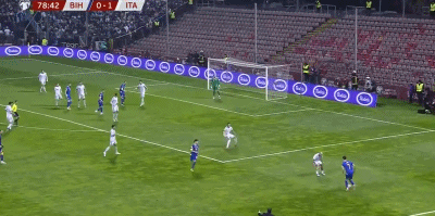 ในนาทีที่ 103 Tonali ส่งบอลผ่านคุณภาพสูง ปาเลสตราที่ลงจากม้านั่งสำรองถูกล้มลงที่หน้าเขตโทษ ชนะฟรีคิกสำหรับ Blue Clothing Legion น่าเสียดายที่ประตูของโทนาลีถูกปิดกั้น แม้ว่าเขาจะไม่ได้ยิงประตู แต่อิตาลี หนึ่งคนน้อยกว่า กับคนเดียว กับคนเดียว ถูกล้อมบอสเนียและเฮจิเอียน และลากเกมอย่างเหนียวแน่นจนยิงลูกโทษ