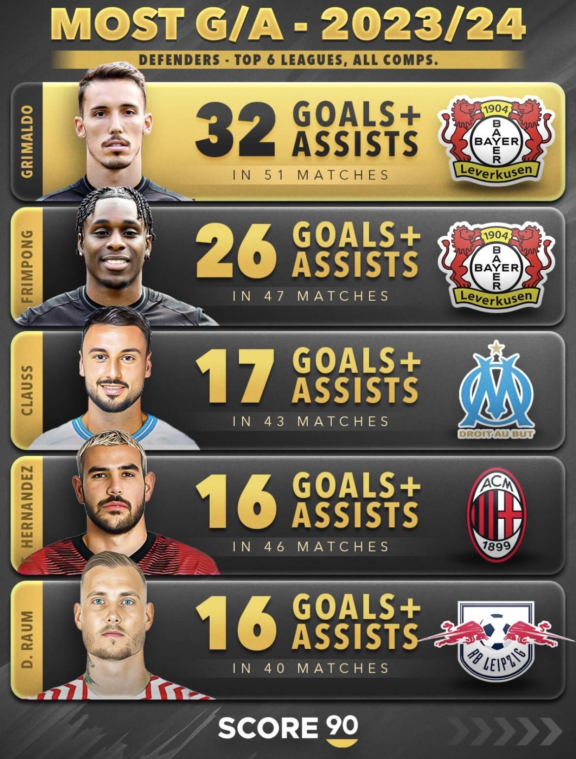 ดูเพื่อนร่วมทีม Flymong ก่อน ในฤดูกาล 2023/24 ทั้งคู่อยู่ในเลเวอร์คูเซ่น 32 ครั้ง 26 ครั้ง ข้อมูลของ Flymong อาศัยการกระแทกความเร็ว การแทรกไปข้างหน้า และการวิ่งซ้ำๆ เป็นหลัก วิธีการรุกของกริมาร์โดมีมากมายมากขึ้น ด้วยการแอสซิสต์ ประตูในสงครามกีฬา และลูกตั้งเตะ Flymong มีหน้าที่เจาะปีกโดยตรง ในขณะที่ Grimardo มีหน้าที่รับผิดชอบในการเป็นผู้นำและทำการโจมตีทั้งหมดทางด้านซ้าย